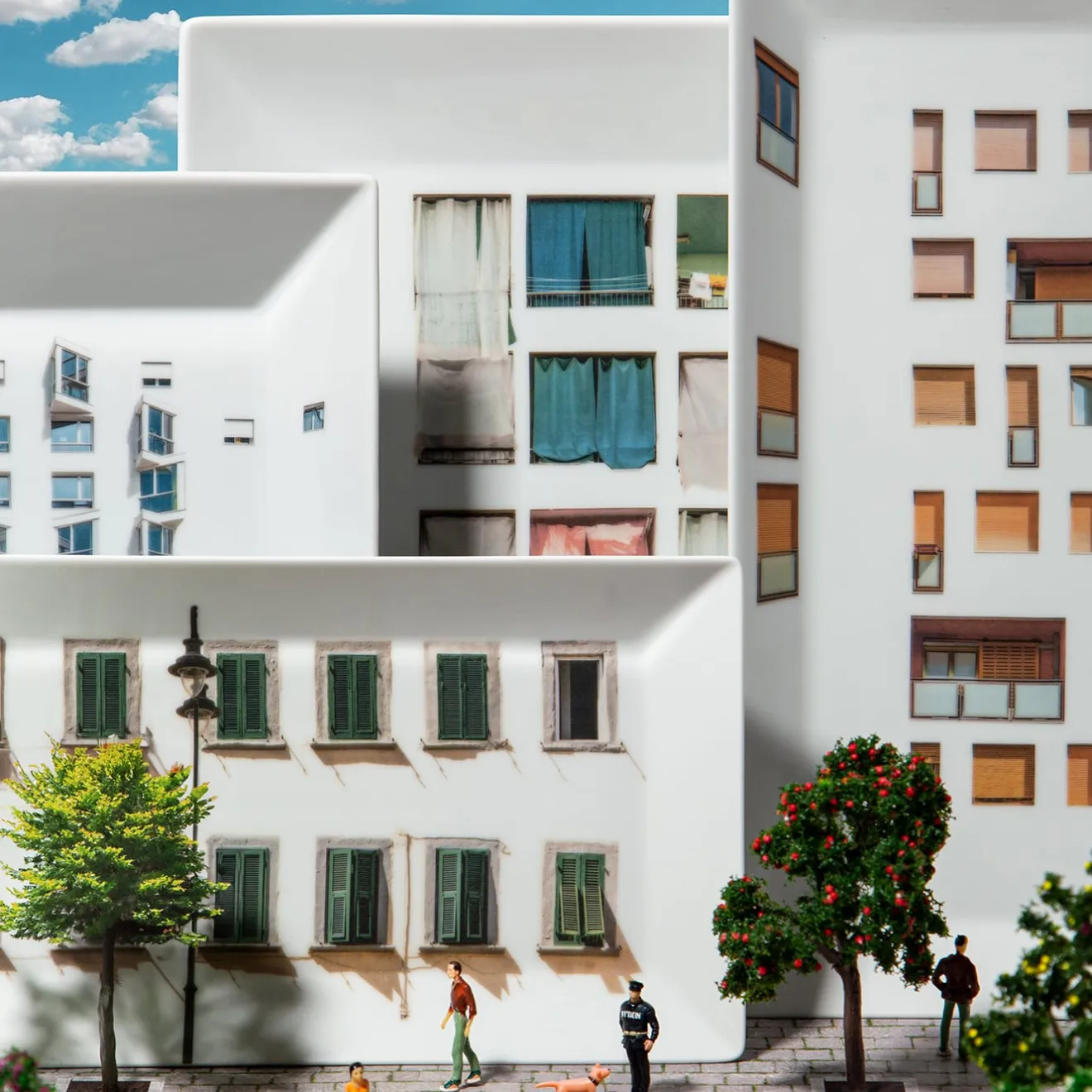 La Finestra sul Cortile è una collezione di vuoti tascabili dalle forme semplici e squadrate su cui sono collocate varie facciate di edifici. La gamma di decori spazia dalle infinite finestre dei primi grattacieli alle persiane tipiche delle città italiane, passando per stili più decorativi e internazionali, tutti pensati per creare un senso di tridimensionalità. I decori estremamente contemporanei e moderni si sposano perfettamente con queste forme semplici, conferendo un tocco artistico all’ambiente in cui sono inseriti.