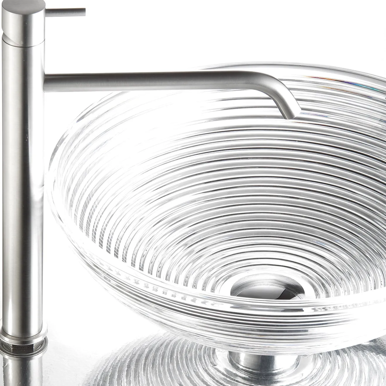 Lavandino artigianale italiano in cristallo trasparente con dettagli scanalati a mano. Caratteristiche funzionali che creano un bagno di eccezionale eleganza, calore e valore.