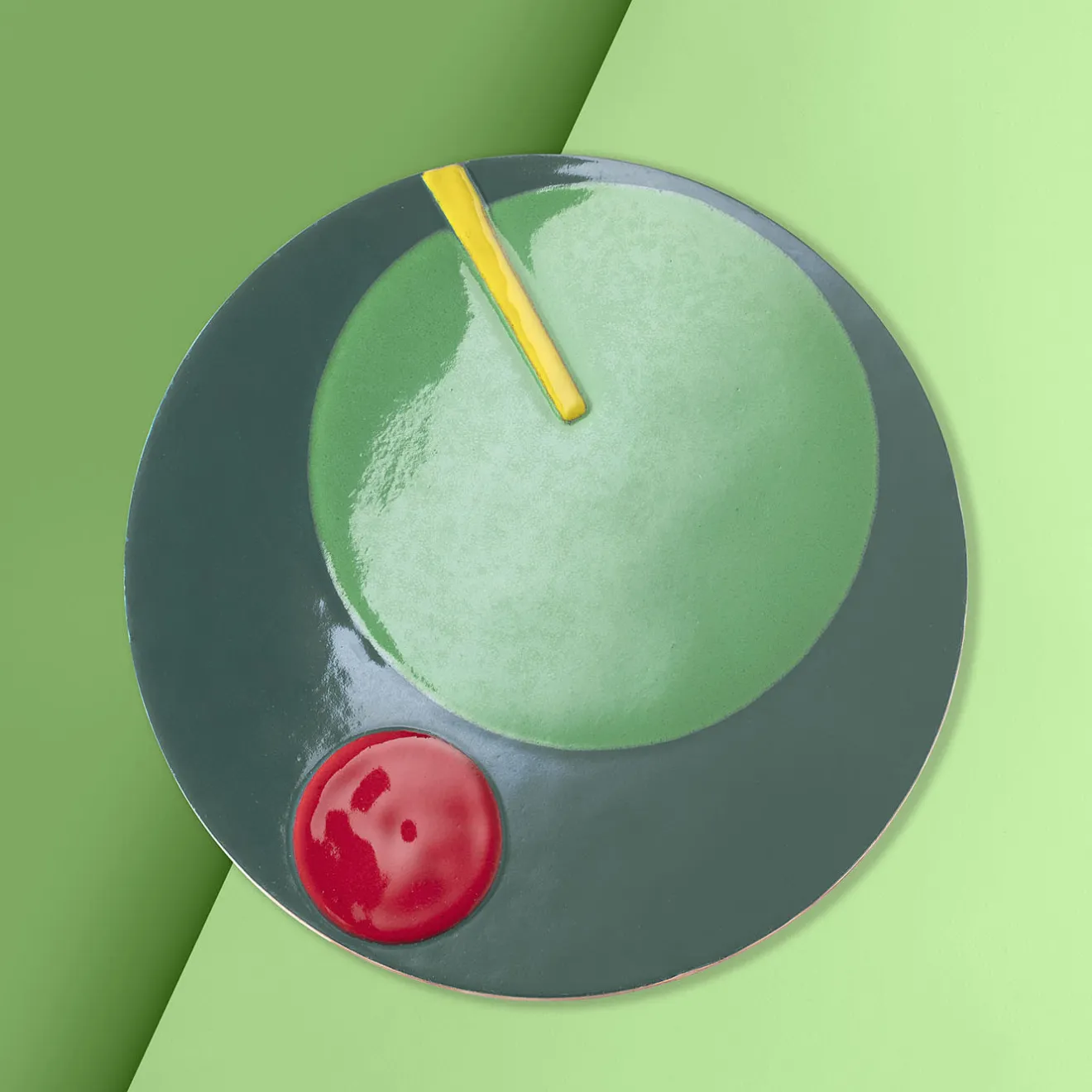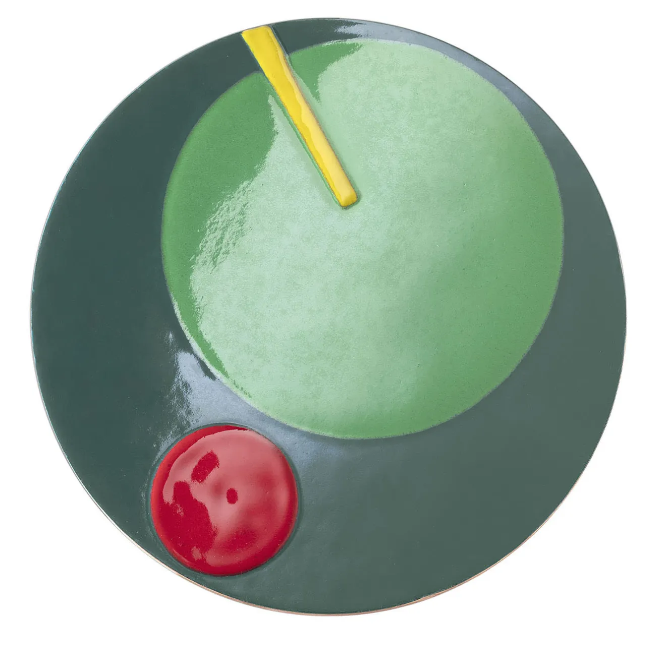 Collezione di piatti decorativi realizzati con la tecnica dello smalto a fuoco su rame. I colori e i motivi derivano da una visita al Guggenheim Museum di New York, mentre la tecnica è un omaggio al design italiano degli anni Cinquanta, Sessanta e Settanta. Il retro è smaltato e rivestito in pelle marrone scuro cucita a mano.