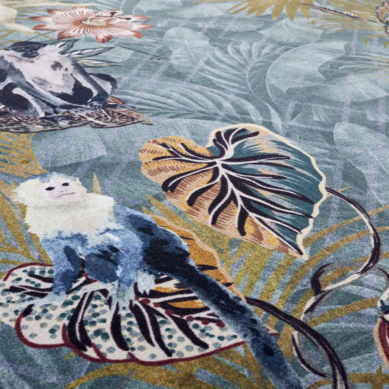 Il tappeto Lucien Jungle presenta uno sfondo geometrico dinamico, su cui si sovrappongono foglie tropicali e scimmie colorate in pose giocose. I colori vivaci e i motivi audaci donano energia e un tocco di stravaganza a qualsiasi ambiente. Questo tappeto rotondo è pensato per trasformare gli interni con un carattere distintivo, ideale per chi desidera aggiungere un tocco vivace e fantasioso al proprio arredamento.