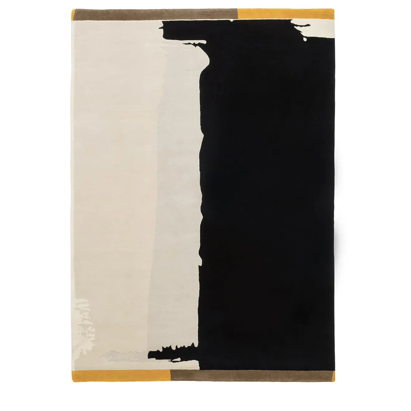 Questo superbo tappeto combina tecniche artigianali tradizionali e una sensibilità audace e moderna. Disegnato dal team creativo di Karpeta, questo pezzo è caratterizzato dall’intramontabile combinazione di colori bianco e nero, con ampie aree in tinta unita che sembrano scivolare l’una sull’altra, dando un effetto dinamico. La calda tonalità del giallo e del marrone conferisce un accento complementare ai bordi corti del pezzo, che è realizzato in lana su cotone ed è disponibile in due dimensioni: 170 x 240 cm o 200 x 300 cm. Altre misure sono disponibili su richiesta.