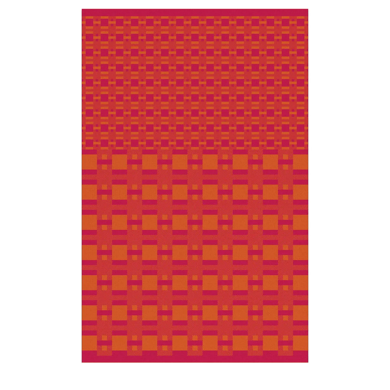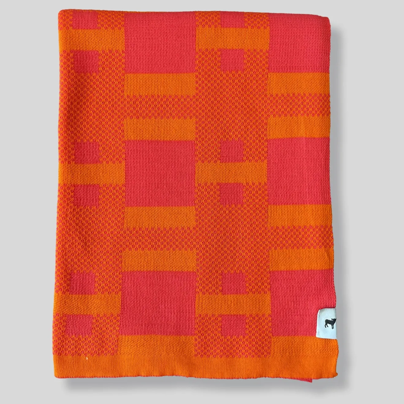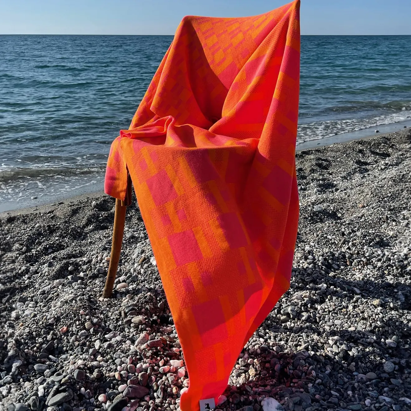 Le vibranti tonalità dell’arancio e del rosso sono quelle scelte per questa elegante coperta jacquard piqué-trama, un pezzo prezioso ottenuto dalla tessitura di pregiati filati di cotone bio a quattro capi. Il caratteristico motivo che sfoggia appartiene a un progetto computazionale in cui i motivi grafici sono generati casualmente utilizzando un codice Max/MSP. Nel catalogo Artemest è disponibile anche una versione gialla.