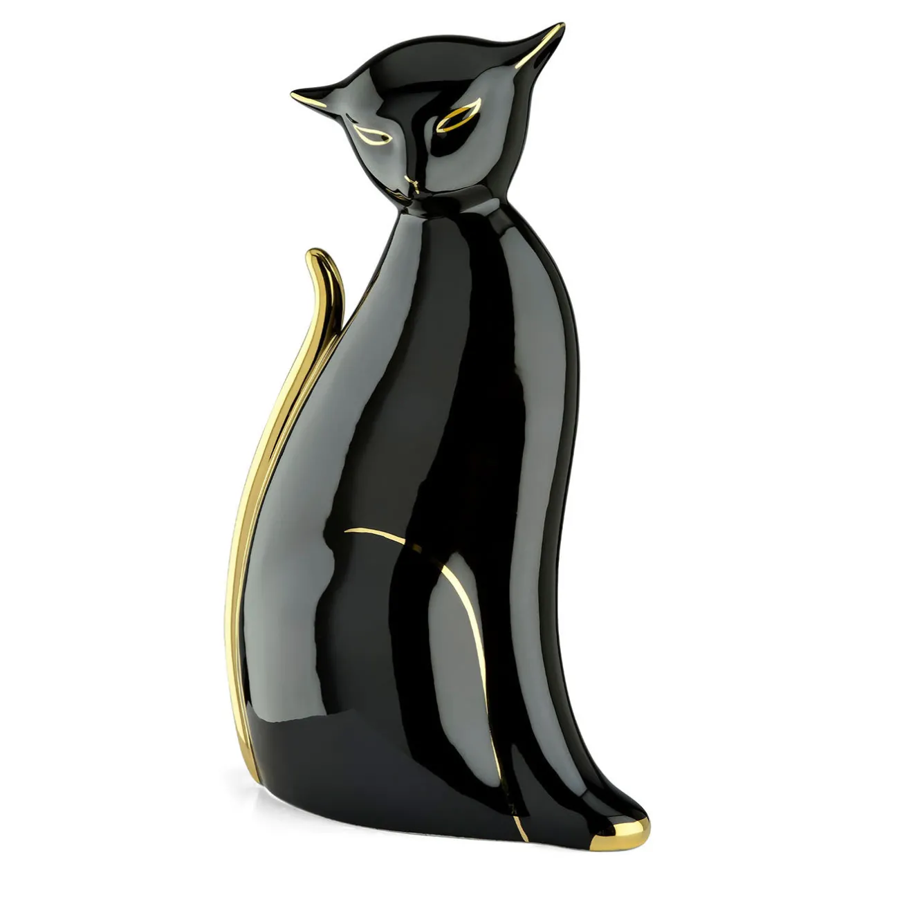 Un oggetto d’arte elegante e raffinato che porterà le linee singolari e raffinate dell’ispirazione dell’Asia orientale in interni contemporanei dallo stile eclettico o minimalista, questa statuetta incarna l’eleganza nella sua essenza più assoluta. Abilmente realizzata a mano in porcellana laccata in una tonalità nera lucida, la sua forma sinuosa è impreziosita da dettagli in oro zecchino applicati a mano.