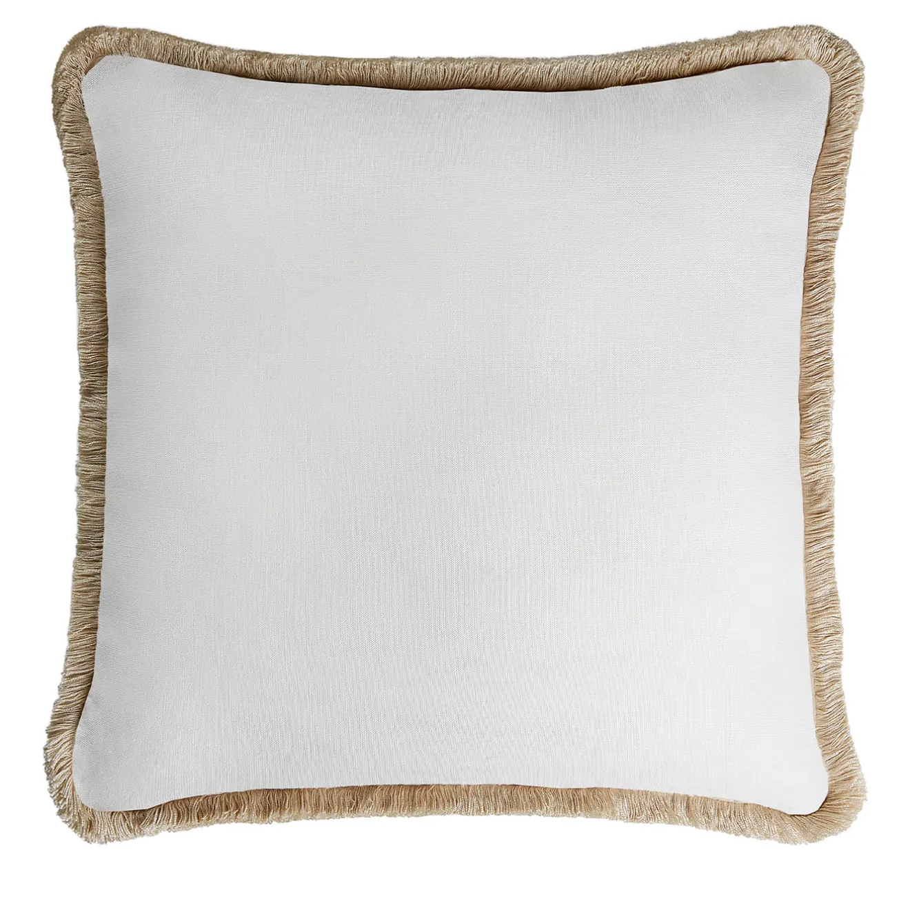 LO Decor Cuscino in lino Happy bianco con frange beige