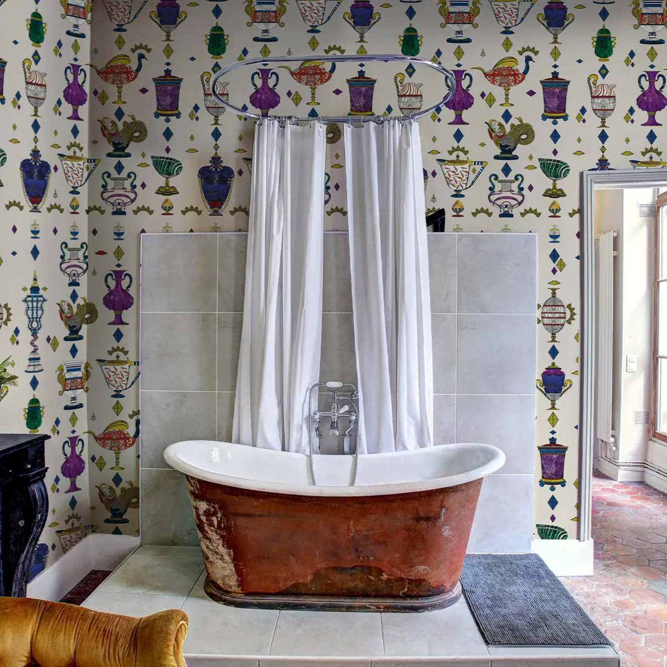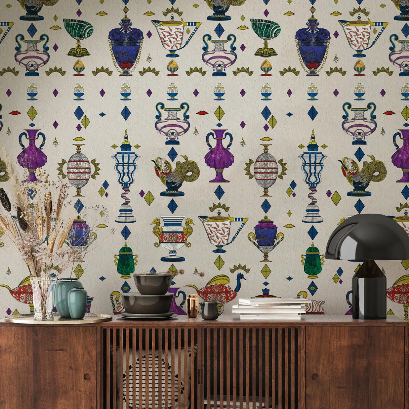 In una società in cui erano la famiglia e/o il marito a decidere per le donne e il loro destino, Anna Maria Luisa de Medici (detta Ludovica) era indiscutibilmente all’avanguardia. Era una straordinaria amante dell’arte e dello splendore. Questa decorazione murale è liberamente ispirata a lei come donna, ma soprattutto ai suoi tesori, ai suoi gioielli, al suo stile e al suo coraggio di essere al di sopra del suo tempo.