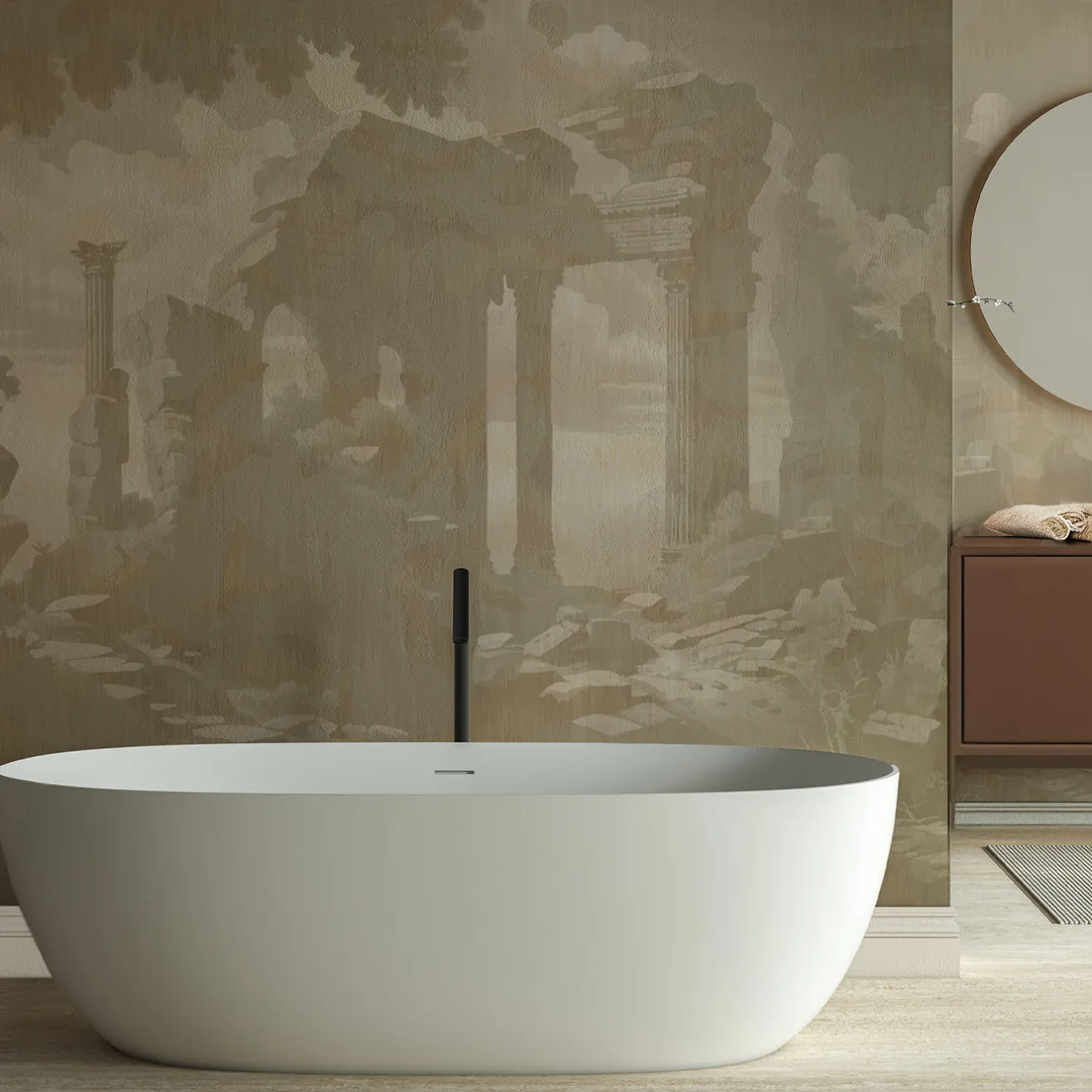 Questa carta da parati straordinaria unisce con eleganza le rovine romane classiche a un motivo Ikat tonale, arricchito da un sottile effetto camouflage che ne aumenta la profondità visiva. Stampata su carta fine art ecologica con finitura opaca effetto carta da disegno, offre una superficie tattile e raffinata. Il design fonde la grandezza del passato con un’estetica contemporanea, dando vita a una narrativa visiva senza tempo e sorprendente. Parte della collezione Visioni. Prezzo indicato al metro quadrato. Disponibile anche nella versione Canvas. Per ulteriori informazioni, contattare il Concierge. Design di Magnus Gjoen.