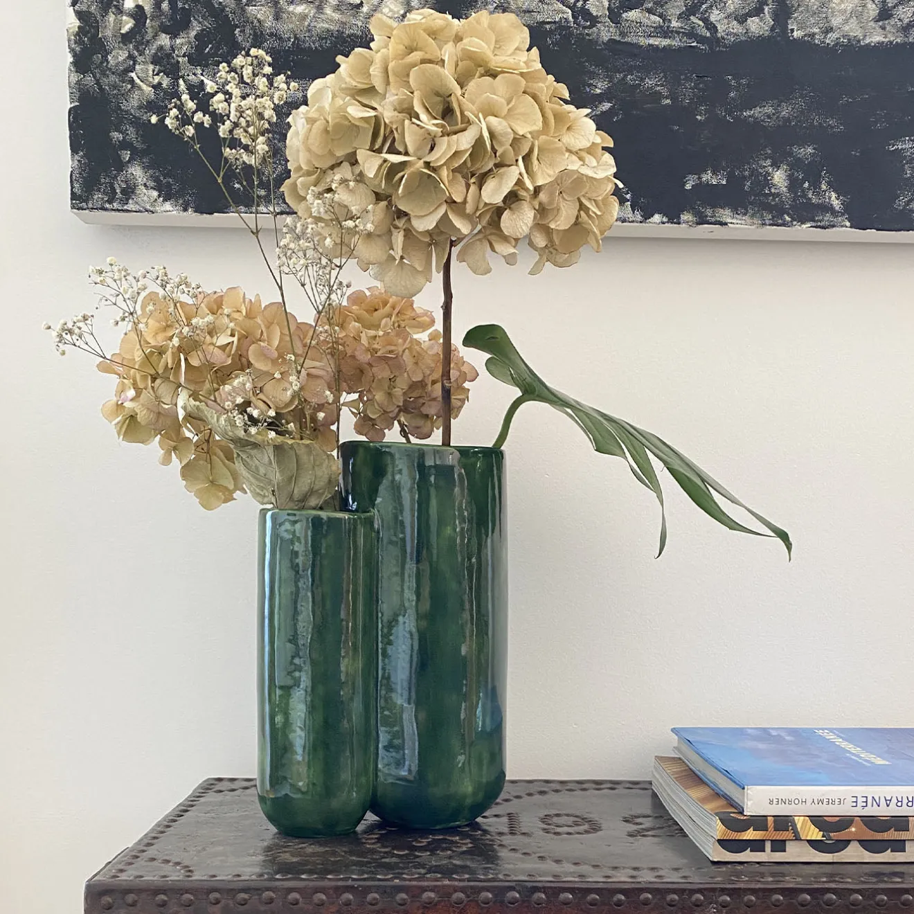 Il vaso verde lucido MattiaMatteo Foglia presenta un design scultoreo con due cavità che ampliano le possibilità di disposizione dei fiori. La sua superficie verde bottiglia lucida mette in risalto le forme organiche e arrotondate, creando un pezzo d’affermazione adatto sia per interni contemporanei che classici. La dimensione media e la finitura liscia contribuiscono alla sua presenza raffinata e al suo fascino decorativo versatile.