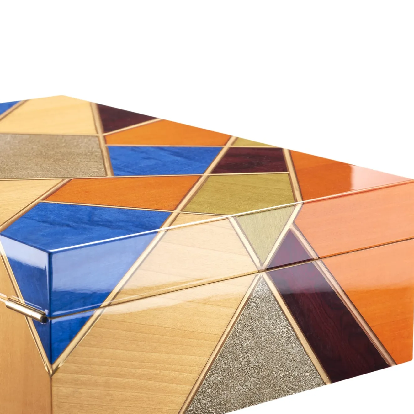 I ricordi sono importanti, ed è importante raccoglierli in modo unico con la scatola da collezione Tellux Sibyl. Un motivo geometrico intarsiato a mano combina vari tipi di legno: bolivar pregiato, palissandro, ebano e frassino. Incrociato con profili dorati, l’esterno è spazzolato e lucidato a specchio. L’interno è rivestito in alcantara beige. Può contenere fino a 8 orologi.