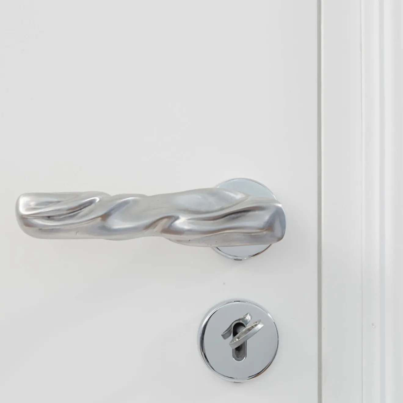 Un design scultoreo abilmente realizzato a mano in un’affascinante forma a fiocco attorcigliato, questa maniglia per porta sarà un’aggiunta unica a qualsiasi porta di un interno contemporaneo. Parte della serie Fiocco, disegnata da Nicole Valenti, è minuziosamente realizzata a mano in alluminio naturale con un sorprendente e sontuoso effetto lucido.