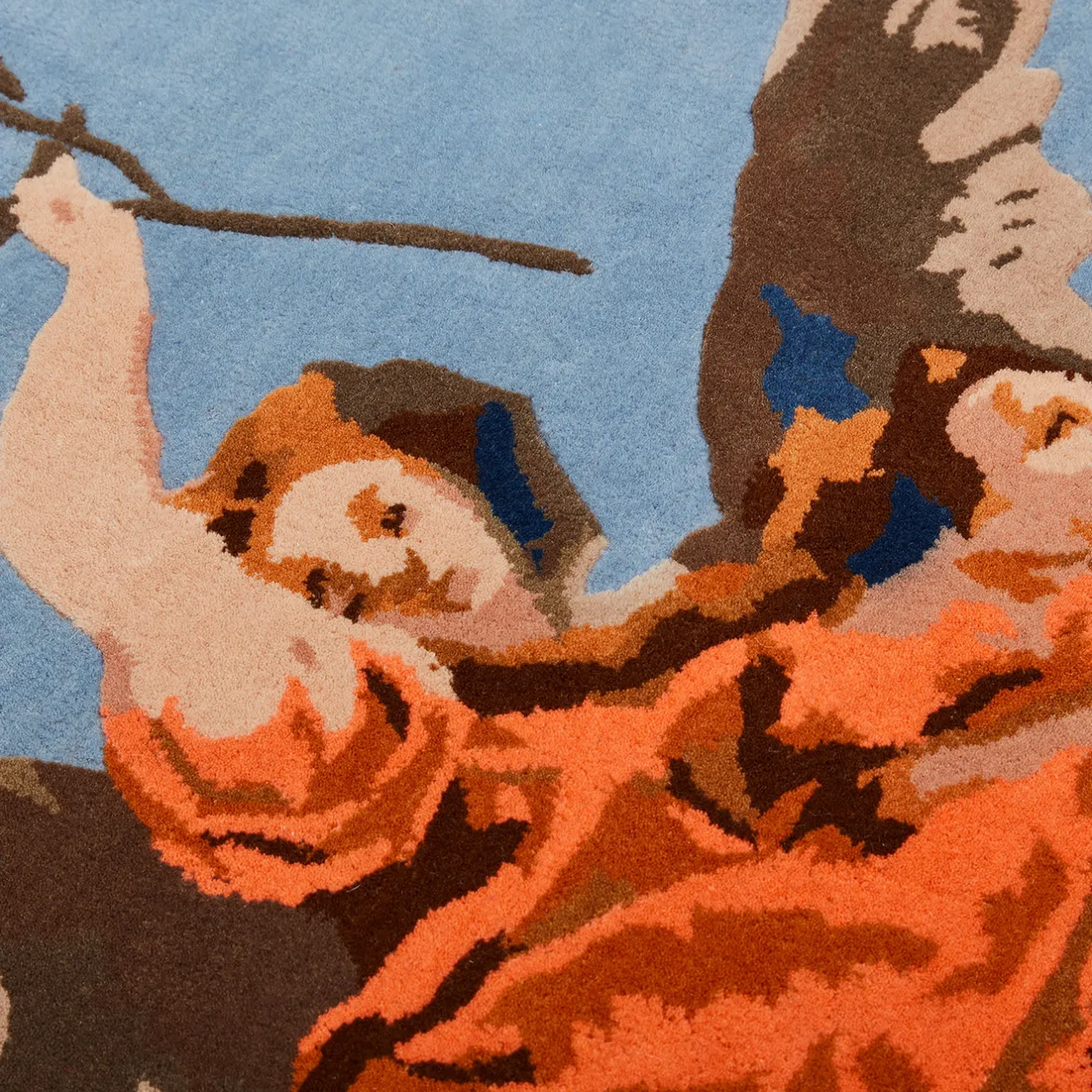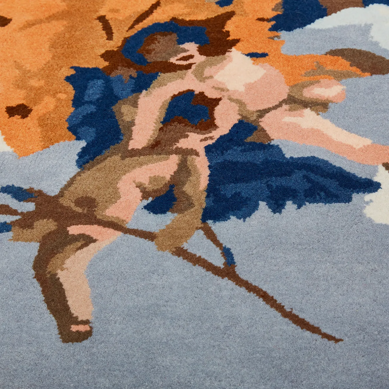 Questo accattivante tappeto disegnato da Alessandra Baldereschi è un omaggio artistico al pittore veneziano del XVIII secolo Giambattista Tiepolo, reinterpretando il suo “Gloria d’angeli†con un tocco moderno. Il profilo ondulato riflette la cornice originale del dipinto, mentre le figure angeliche fluttuanti e i colori assumono uno stile moderno. Interamente trapuntato a mano in India con lana, questo superbo tappeto ha un vello di 10 mm di altezza ed è personalizzabile in altre misure su richiesta.