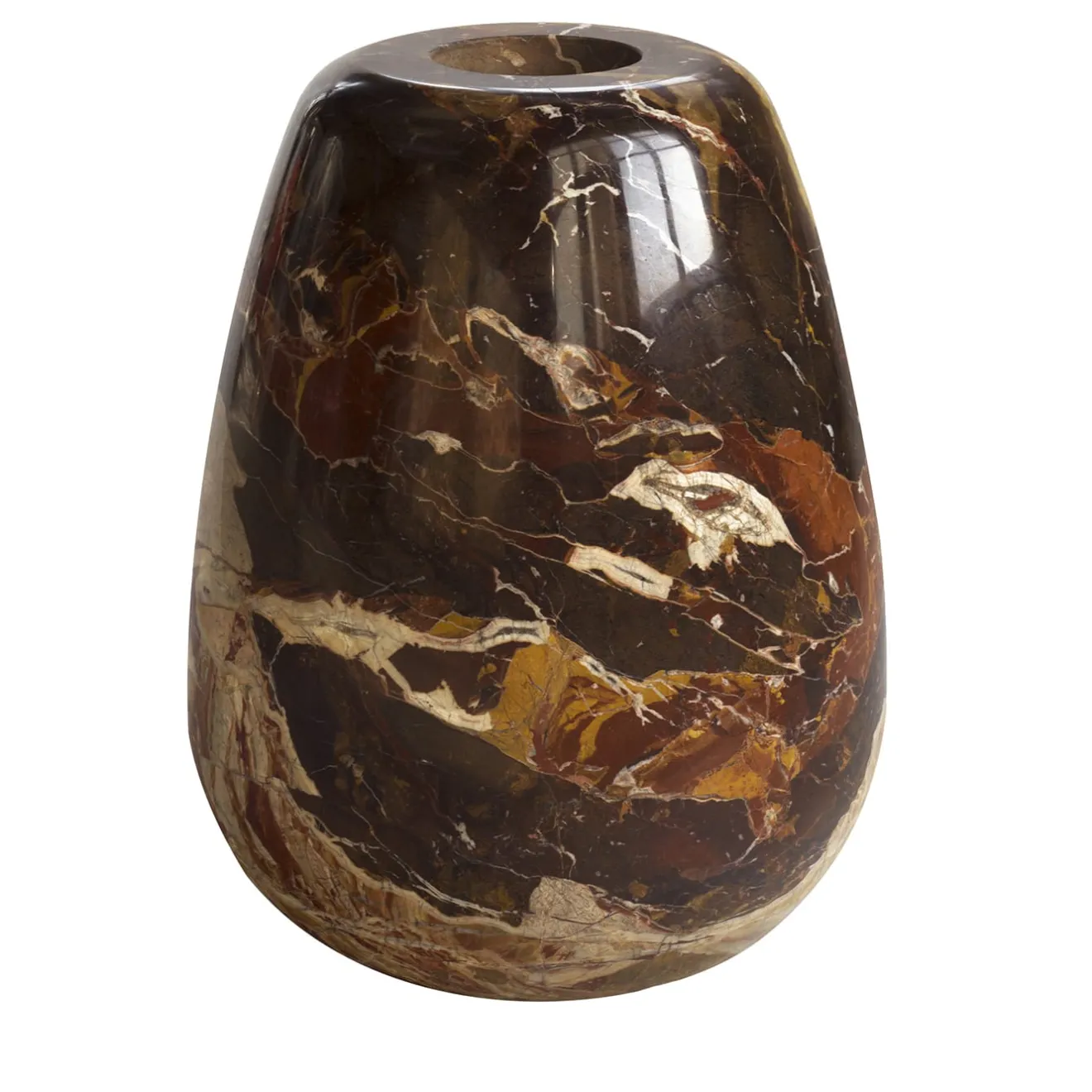 Superbamente realizzato a mano in un unico pezzo di Breccia Pontificia, un elegantissimo e pregiato marmo italiano estratto dalle cave siciliane, questo elegante vaso presenta eleganti e luminose venature bianche e rosse. Disegnato dall’architetto Franco Albini nel 1940, è una vera e propria opera d’arte dal carattere singolare che si distingue in una serie di progetti numerati e certificati.