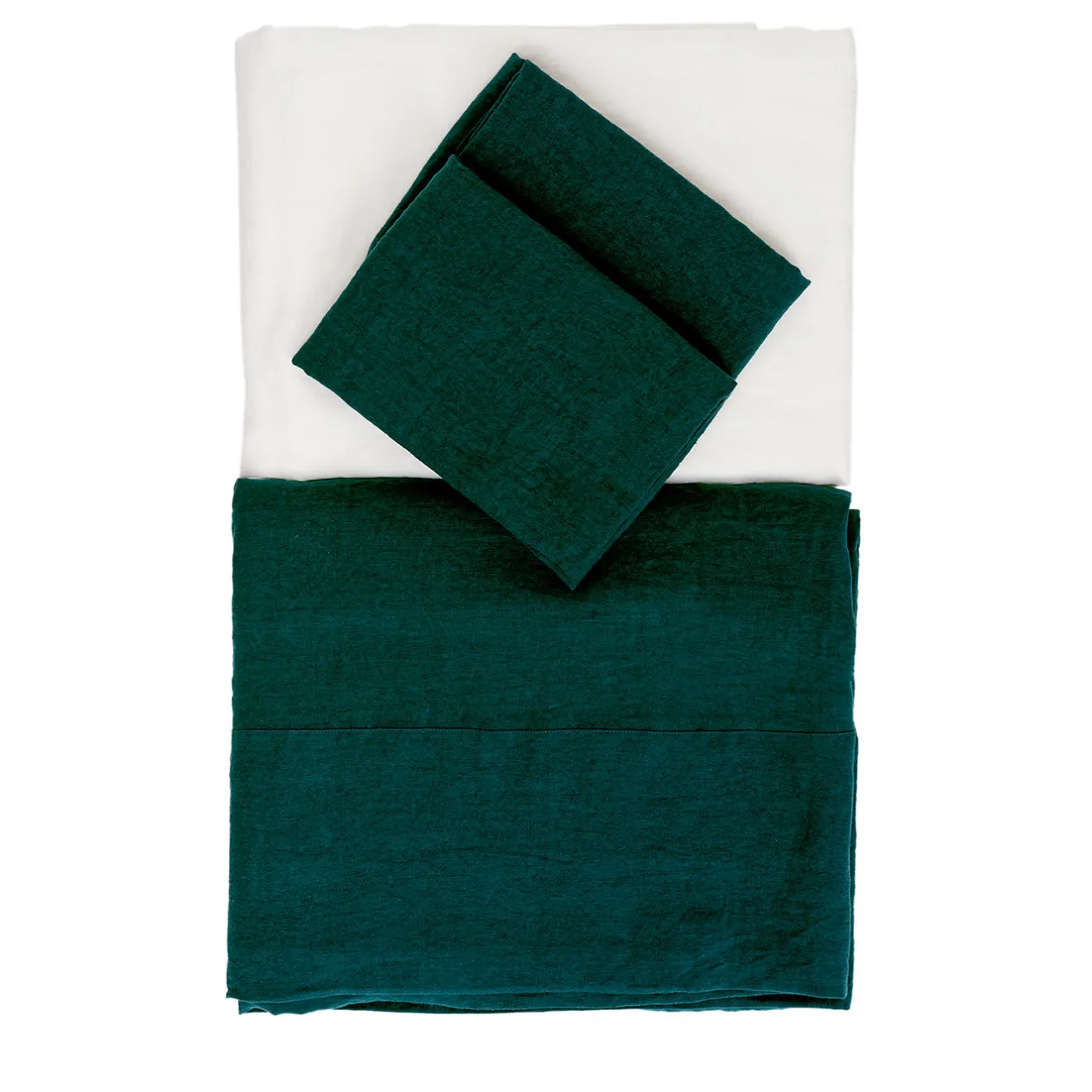 Un’aggiunta elegante a qualsiasi casa, questa biancheria è stata realizzata interamente a mano con il lino più pregiato. Il lenzuolo bianco e il lenzuolo superiore in lino verde bosco, con federe abbinate, creano una combinazione di colori senza tempo, perfetta per una camera da letto o una stanza degli ospiti completamente bianche, aggiungendo un tocco di colore e la sottile raffinatezza di un lino leggero e di alta qualità da 165 gr/mq. Sono disponibili diverse misure – chiedete al concierge per conoscere i prezzi delle altre opzioni.