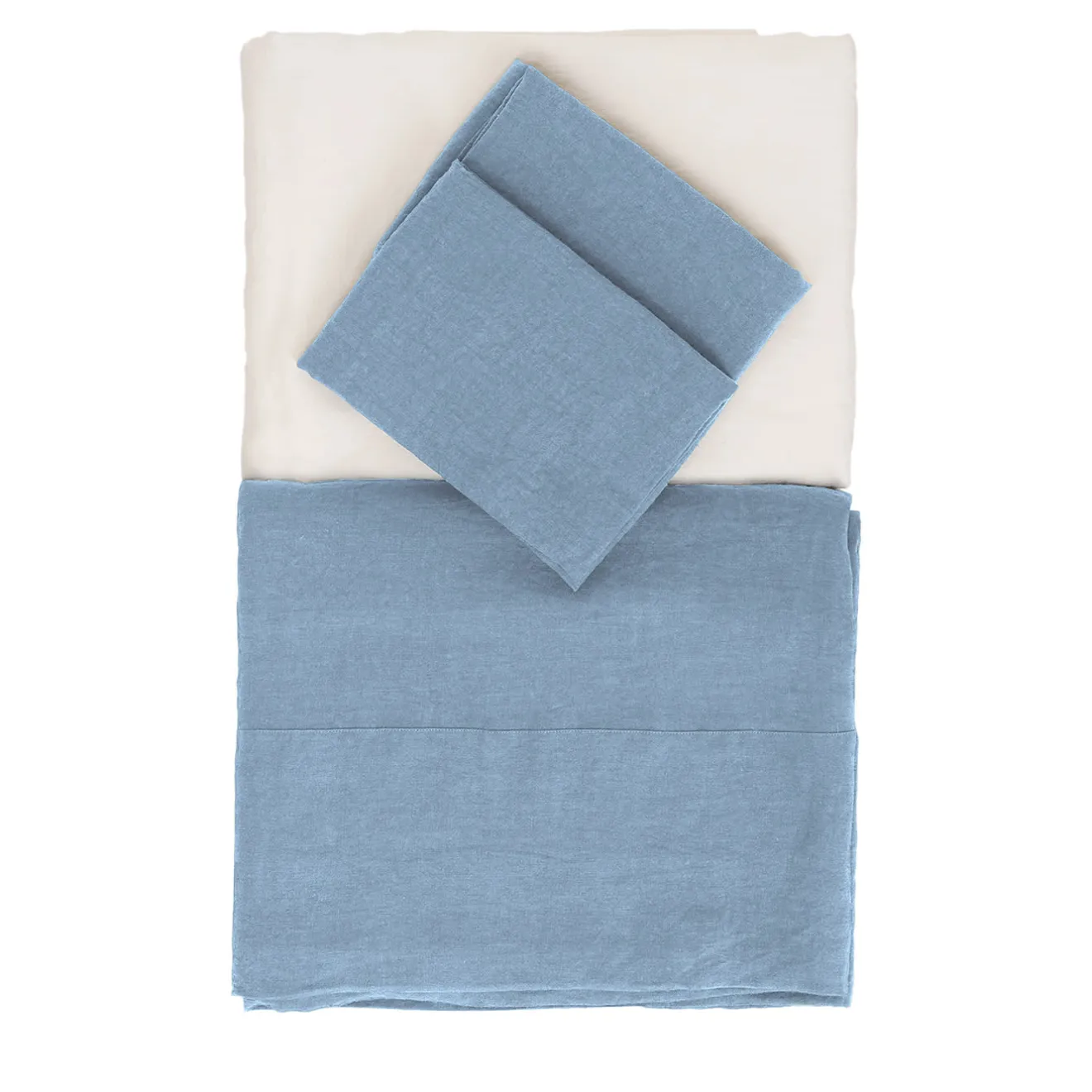 Elegante e colorato, interamente realizzato a mano con il lino più pregiato, questo set è composto da un lenzuolo di sopra con federe abbinate, tinte in un sofisticato blu petrolio, e da un lenzuolo bianco che si adatta a un materasso profondo 30 cm. La delicata tonalità del colore è rilassante e ideale da abbinare a una stanza dipinta e arredata con colori neutri. Disponibile in diverse misure: chiedete al concierge i prezzi e i dettagli.