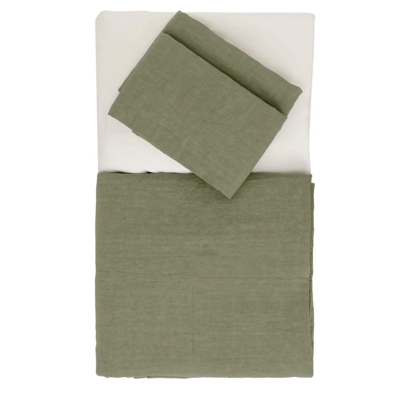 Elegante e colorato, interamente realizzato a mano in lino pregiato, questo set è composto da un copripiumino con federe abbinate, tinte in un sofisticato verde salvia, e da un lenzuolo bianco che si adatta a un materasso profondo 30 cm. La delicata tonalità del verde è rilassante e ideale da abbinare a una stanza dipinta e arredata con colori neutri. Disponibile in diverse misure: chiedete al concierge i prezzi e i dettagli.