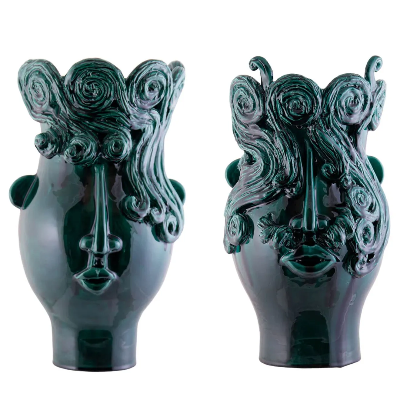 Questi due vasi rappresentano gli Sposi in Verde, che viaggiano lontano, ma il loro cuore è in Sicilia, tra i capperi di Salina e le olive del Belice. Camminano in coppia, ma a volte possono essere separati. Per ulteriori informazioni, contattare il Concierge.