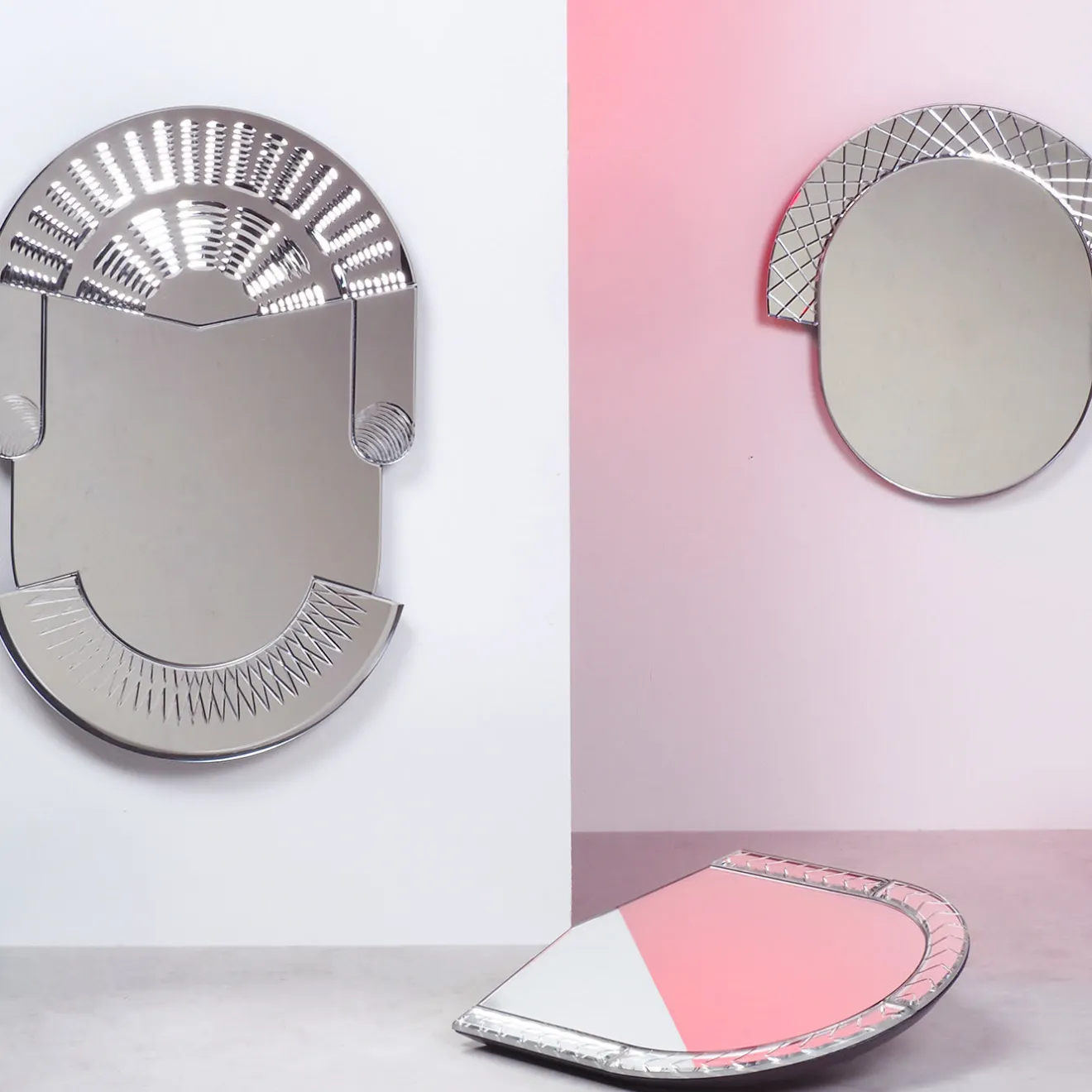 Elemento è una serie di specchi in vetro massiccio ricchi di profondità e di linee grafiche decise, sapientemente lavorati a mano a Murano. Questa collezione è l’estensione della collezione Scena, da cui riprende piccoli dettagli che creano sempre fascino. Lavorando con gli abili artisti del vetro di Murano, è stato creato un sottile uso della prospettiva e della profondità grazie all’intricato lavoro di intaglio e molatura delle superfici in vetro specchiato, poi argentate per dare profondità ai dettagli.