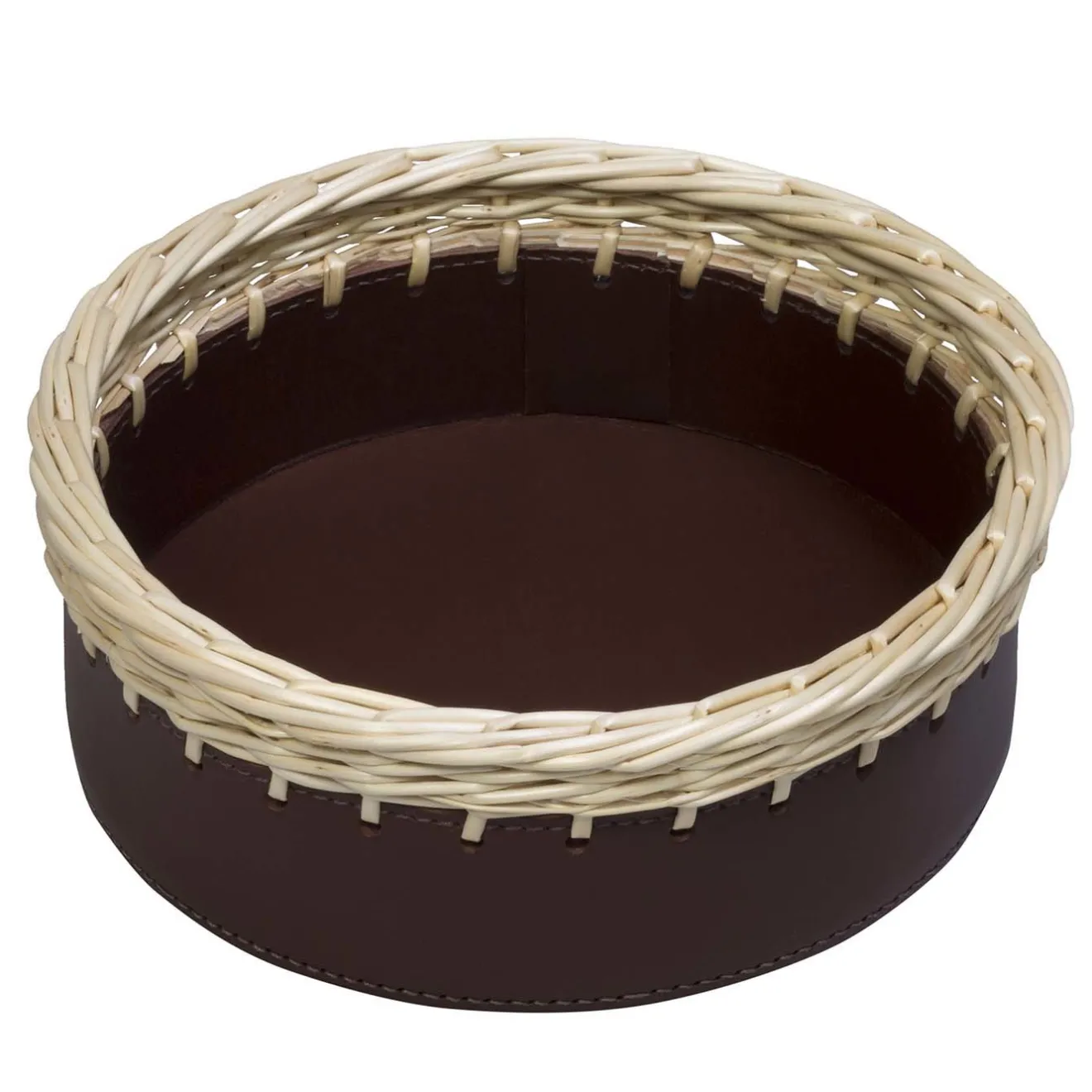 Prezioso complemento per una casa rustica di campagna o per aggiungere un accento naturale a un interno contemporaneo, questo vassoio portaoggetti è tanto versatile quanto sorprendente. La sua silhouette rotonda in pelle di sella tinta con pigmenti vegetali è impreziosita da un decoro in vimini intorno al bordo che aggiunge una decorazione testuale di grande effetto al pezzo. Può essere esposto da solo o con le altre scatole e contenitori di Rabitti 1969 su una consolle d’ingresso, un tavolino da salotto o un mobile da camera.