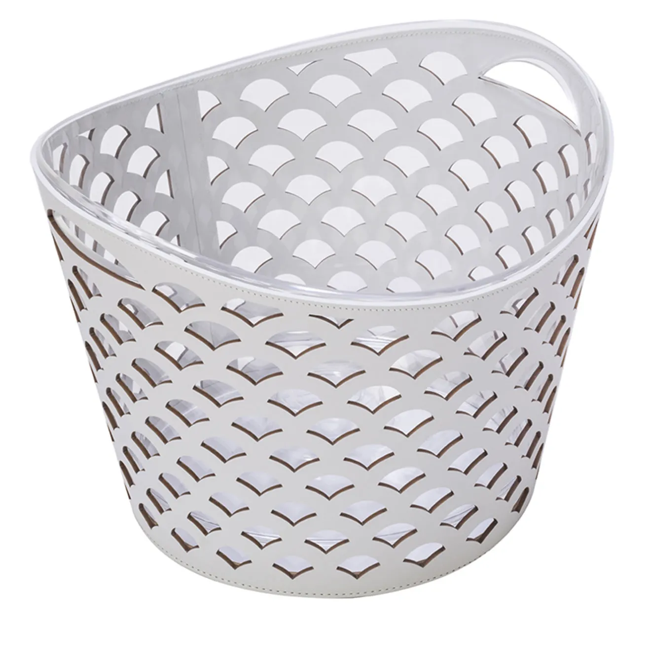 Dotato di un contenitore interno rimovibile in acrilico, il secchiello da champagne Cortina è rivestito in finissima pelle rigenerata con il delizioso motivo Venezia. Creata dal nostro designer per ricreare un design esotico ma elegante, la struttura in pelle è resistente all’acqua e ai raggi UV e di ottima qualità e durata. Il contenitore è rimovibile per una pulizia facile e pratica.
