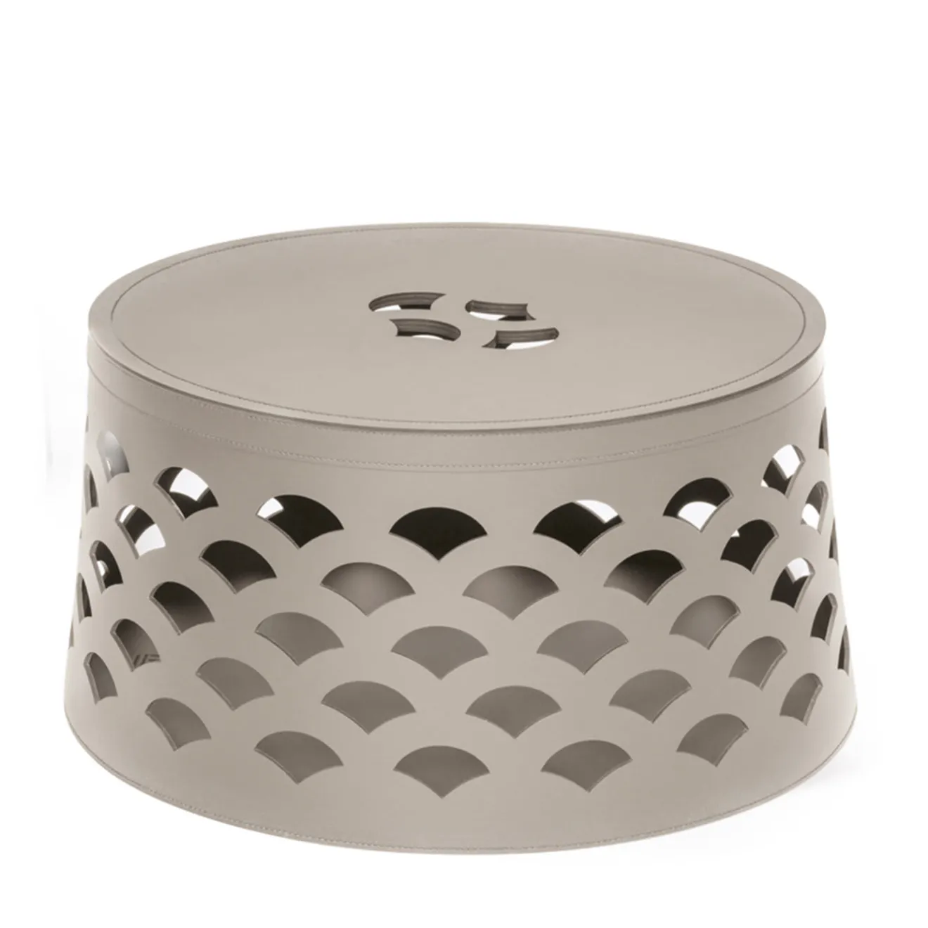 Interamente realizzato in finissima pelle rigenerata di alta qualità, questo cestino rotondo è perfetto per riviste, biancheria e oggetti di uso quotidiano. La finitura della pelle, resistente all’acqua e ai raggi UV, rende il cestino ideale sia per l’uso interno che esterno. Il motivo Venezia si ispira alle classiche decorazioni a foglia che ricordano l’esotico, formando forme a ventaglio che si protendono verso l’alto.