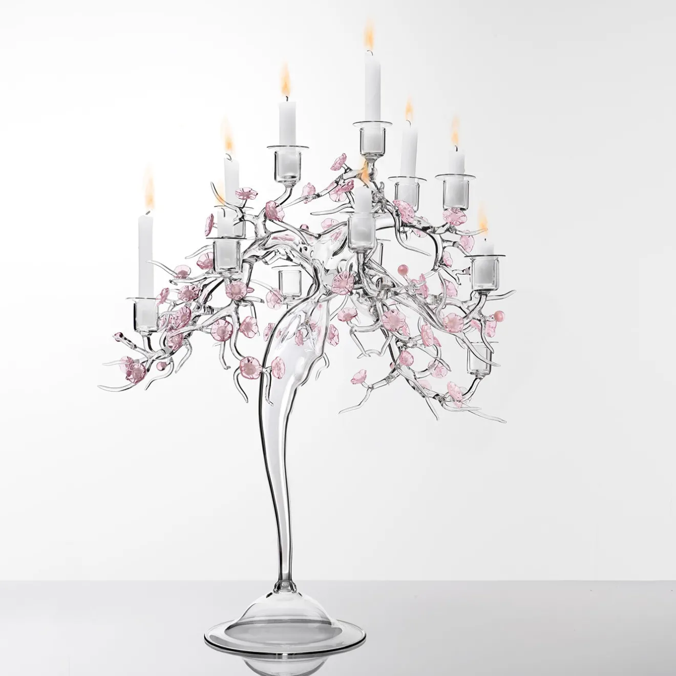 Simone Crestani Candelabro Blossom in Vetro con Dettagli Floreali