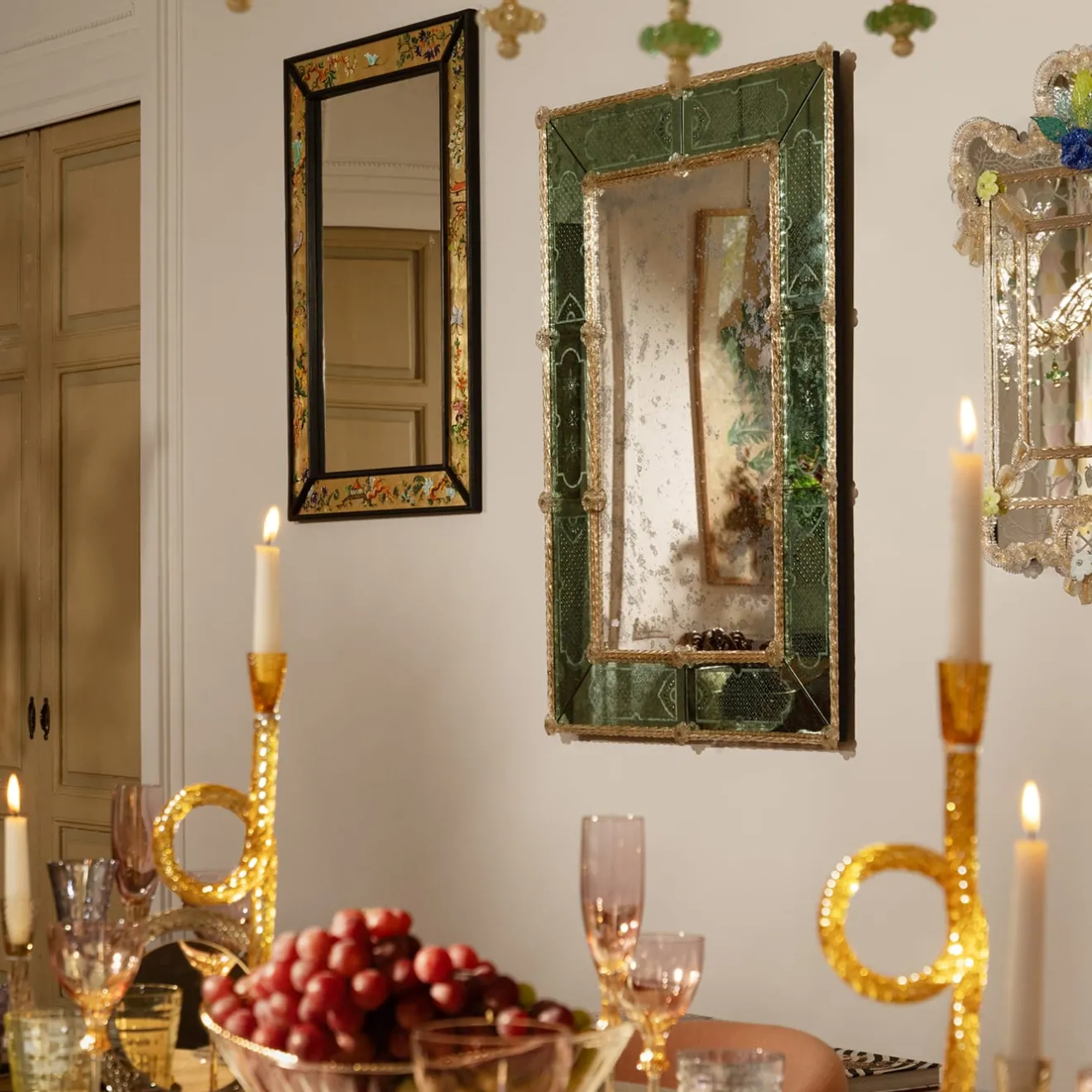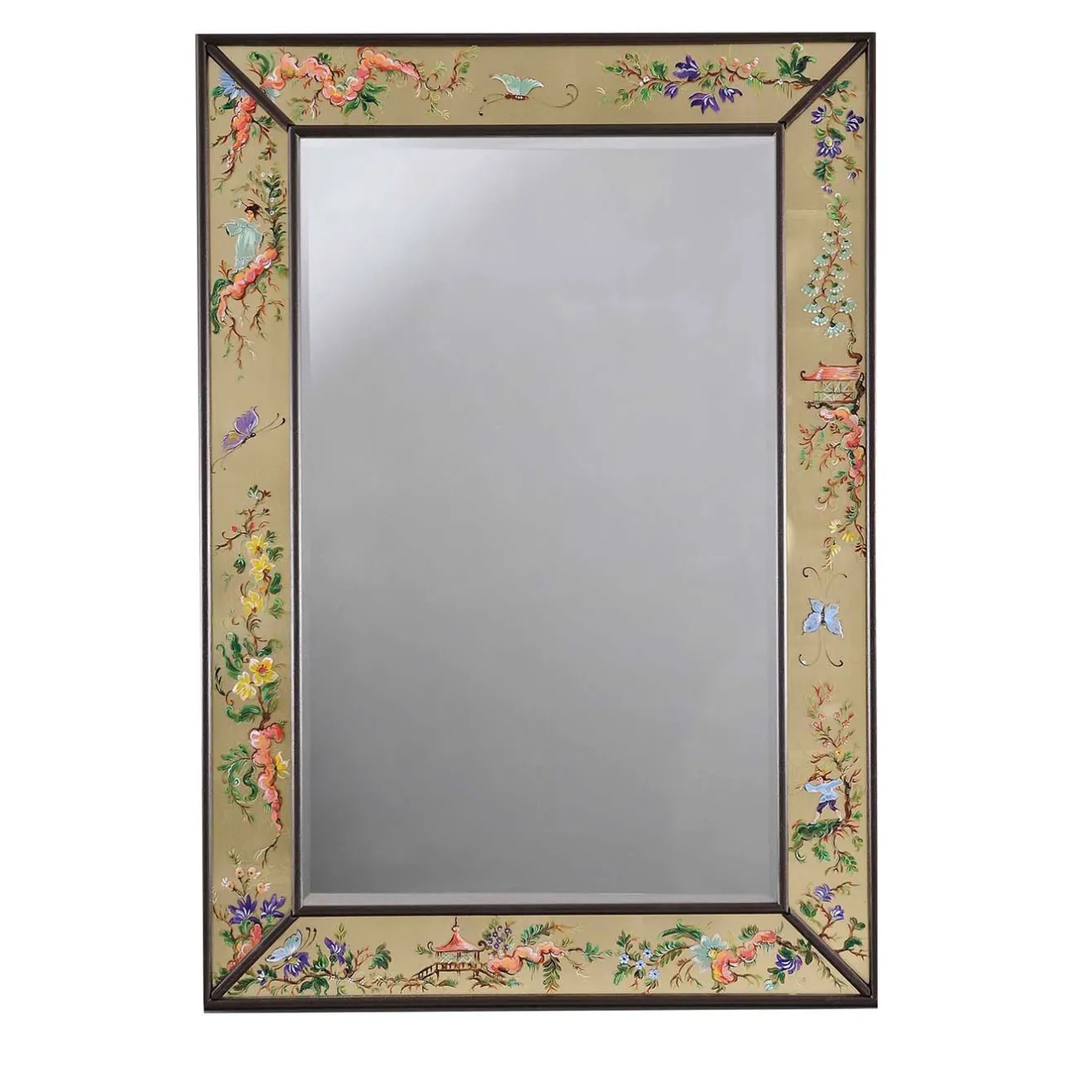 Questo splendido specchio è un superbo pezzo decorativo da aggiungere a qualsiasi interno sofisticato. La sua cornice rigorosa è impreziosita da una delicata decorazione applicata a mano sullo specchio, che rende con maestria una serie di fiori colorati che corrono lungo tutto il perimetro rettangolare. Sia come pezzo d’accento in una camera da letto o in una toilette, sia come decorazione per illuminare un salotto o un ingresso, questo specchio unico nel suo genere farà una dichiarazione elegante.