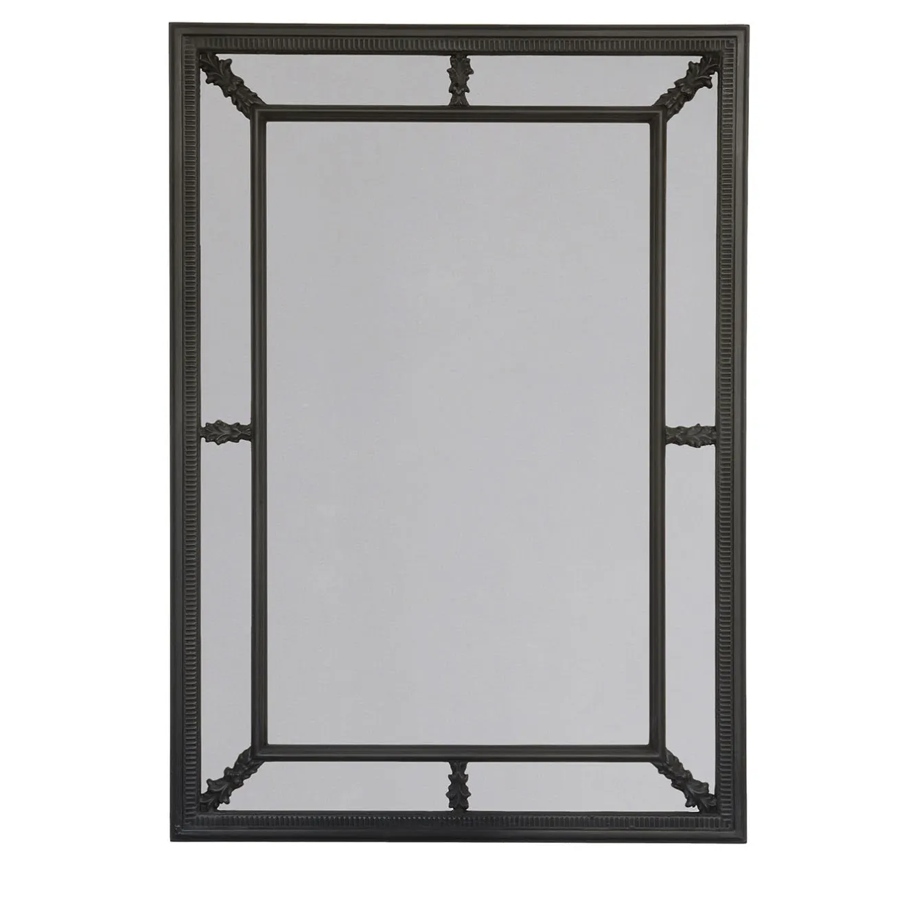 Ampiamente rifinito con tempera nera per una dichiarazione cromatica di inalterata eleganza, questo specchio da parete esemplifica le sapienti e morbide contraddizioni tipiche dello stile Transitional. Minuscoli dettagli intagliati scandiscono la cornice a giorno in legno che, combinando legno di tiglio e faggio, delinea il profilo esterno pulito e le zone interne di forte impatto decorativo.