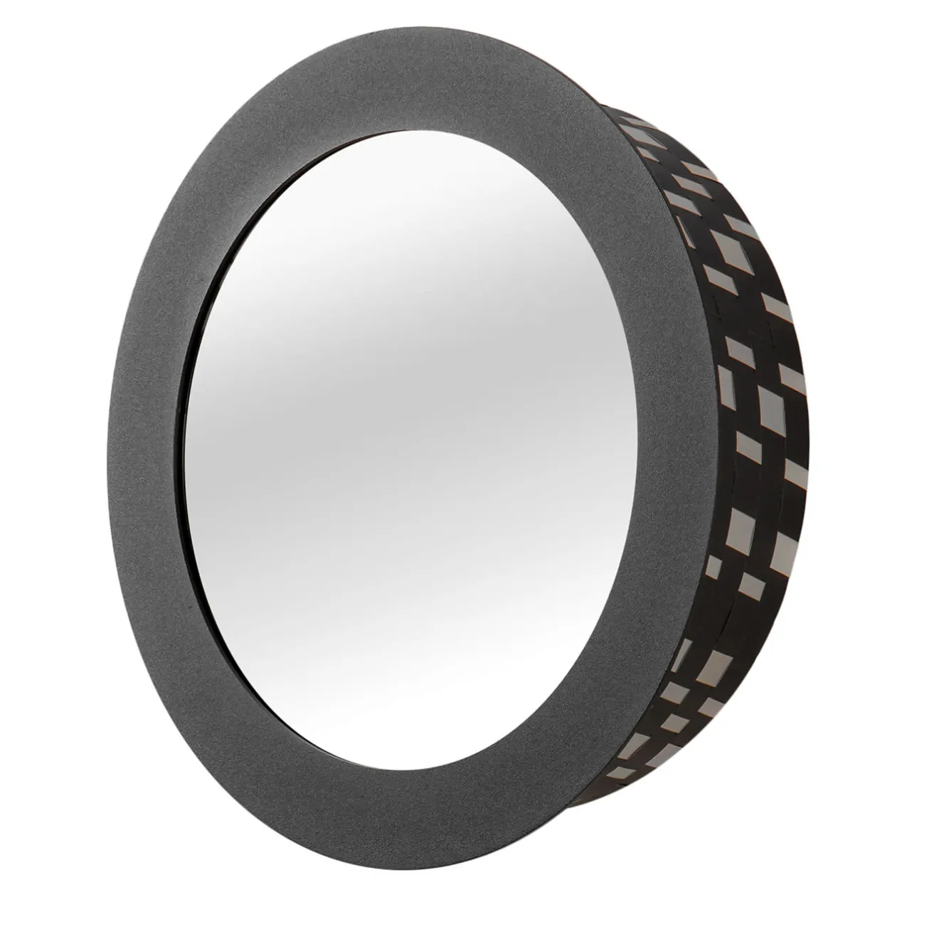 Un pezzo dal carattere straordinariamente glamour, questo specchio rotondo è un pezzo artigianale che sintetizza perfettamente funzione ed estetica. Il tratto distintivo è la sua struttura SPLOT® – una rete di fogli di alluminio di alta qualità – che presenta una parte nera piena in contrasto con una nera e argentata arricchita da un effetto ottico. Abilmente lavorato a mano, è disponibile in diverse varianti.