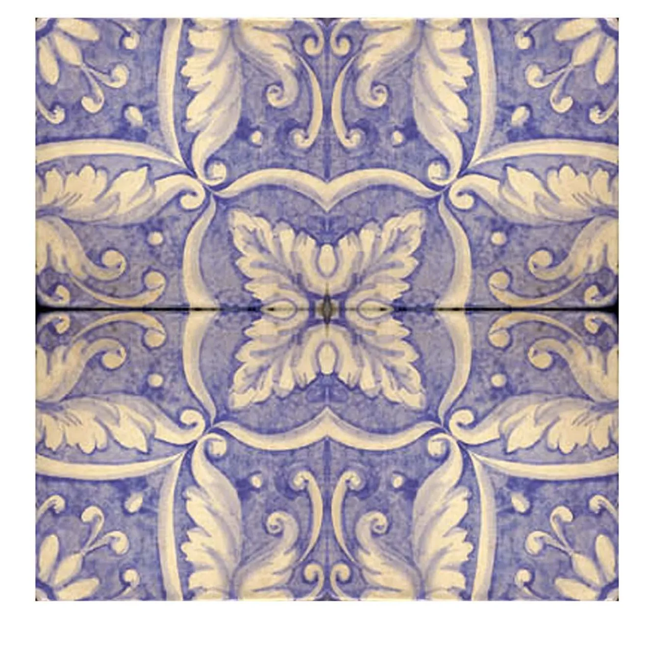 Realizzate a mano secondo l’antica tradizione delle maioliche siciliane, queste quattro piastrelle si fondono per rivelare un disegno straordinariamente ornato che ricorda la grandezza del tardo Rinascimento. Le quattro piastrelle si uniscono per creare un disegno simmetrico con motivi color avorio su un elegante sfondo lilla. Delicate volute incorniciano le fronde, creando una sottile giustapposizione di forme che completa il disegno. L’abile uso di colori, forme e forme crea un’estetica accattivante che si presta al meglio come pannello da parete in cucina, sala da pranzo, ingresso o patio.