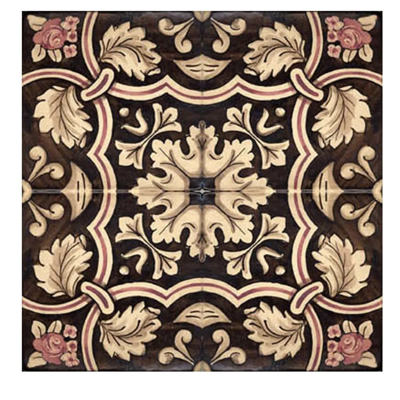 Abile dimostrazione di maestria artigianale, questa maiolica fatta a mano aggiungerà un tocco di antica eleganza a qualsiasi arredamento postmoderno e classico. Interamente realizzate e dipinte a mano, queste piastrelle sono ornate da motivi di ispirazione moresca che si rivelano in quattro piastrelle. Il motivo centrale, dipinto in avorio, presenta un’audace fronda incorniciata da un bordo smerlato rosso e bianco, da cui si irradiano fronde più sinuose e fiori rossi su sfondo nero. Intricate ma sorprendenti, queste piastrelle devono essere applicate senza stuccatura per garantire la continuità del disegno.