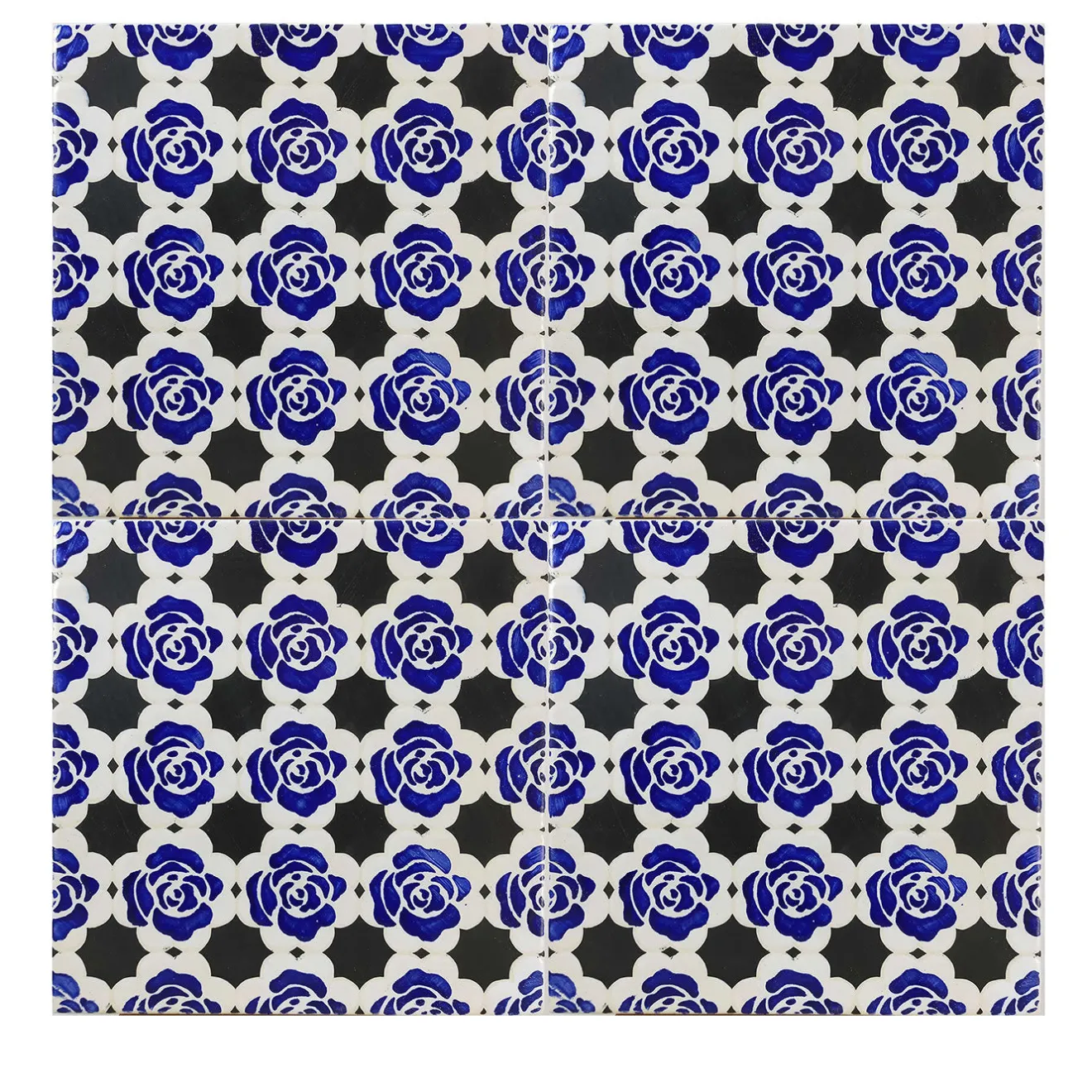 Questo stupendo set di quattro piastrelle, che fa parte della collezione Kimeya di ceramiche artigianali sostenibili disegnate da Vincenzo Messina, si distingue per la straordinaria giustapposizione di toni blu cobalto e grigi, che ricordano il vivido contrasto tra i colorati cardi selvatici e le creste laviche del vulcano Etna. Ogni piastrella è smaltata e decorata a mano.