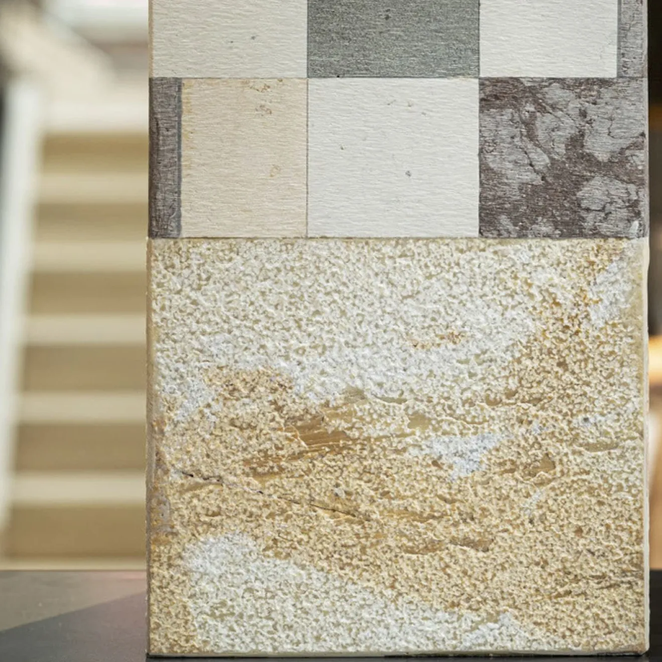 Il vaso Square B presenta un design elegante realizzato con un’armoniosa miscela di marmi e pietre naturali, progettato da Luciano Setten. Questo vaso di medie dimensioni è costruito con cura a forma di parallelepipedo e valorizza qualsiasi arredamento con la sua estetica moderna. Il pezzo presenta una straordinaria combinazione di materiali, tra cui la base e il coperchio in Giallo Siena con finitura bocciardata, perfettamente integrati con i marmi Nero Marquinia, Pietra Serena, Castellavazzo e Bianco Asiago. Il design sistematico assicura un aspetto coeso e l’applicazione di resina epossidica fissa il marmo a un robusto nucleo in metallo o PMMA, creando l’illusione di un blocco unificato. Il coperchio quadrato assicura il contenuto, aggiungendo al contempo la qualità scultorea complessiva del vaso. A causa delle caratteristiche naturali dei marmi e delle pietre, è possibile che si verifichino lievi variazioni di colore e di disegno, per cui ogni pezzo è unico nel suo genere.