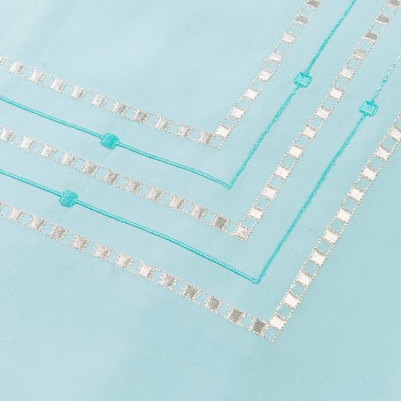 Raffinato complemento per la vostra camera da letto, il copripiumino Ametista (265×225 cm) in azzurro è realizzato in 100% cotone con un pregiato titolo di 300 fili. Evidenziato da un intricato ricamo in raso, il suo design elegante trasforma il letto in un centro di stile. Morbido al tatto e traspirante, questo copripiumino assicura un comfort lussuoso e una raffinatezza senza tempo. Per maggiori dettagli, contattare il Concierge.
