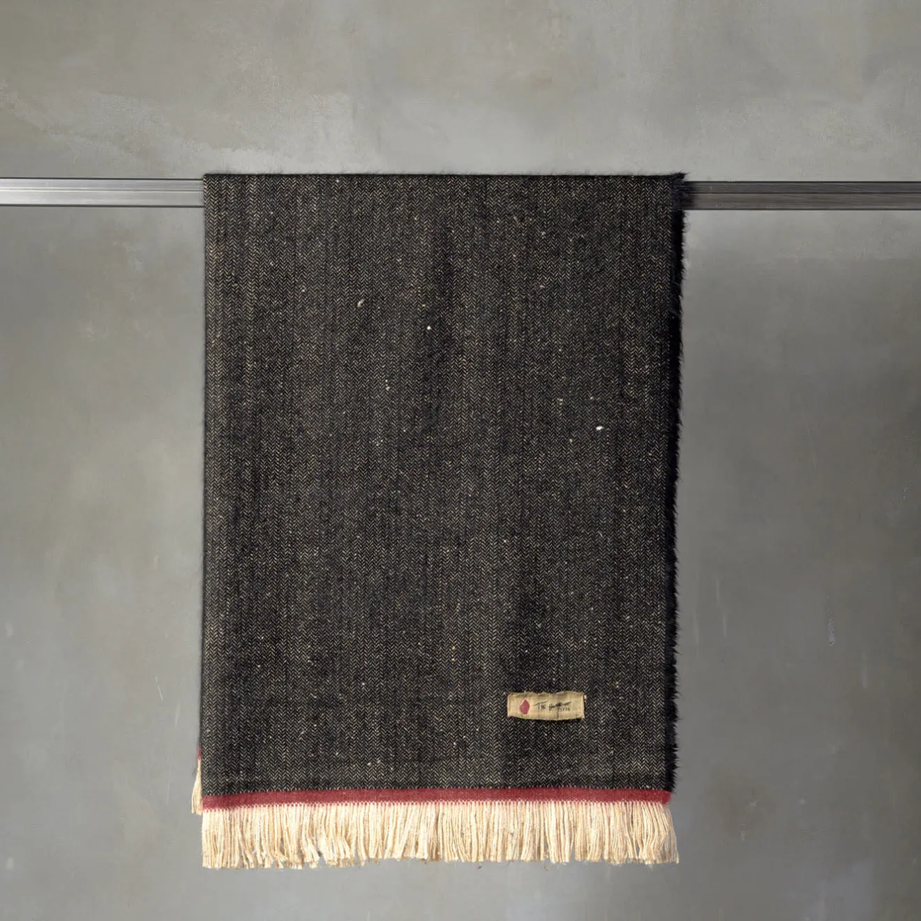 Ricchi contrasti cromatici tracciati da profili lineari affermano l’eleganza audace ma sobria che definisce questa sofisticata coperta artigianale. Frange beige ne ravvivano le estremità, mentre una sottile linea bordeaux segna l’incontro con la minuta trama a spina di pesce. Questa coperta è realizzata con le fibre più pregiate per garantire calore e comfort.