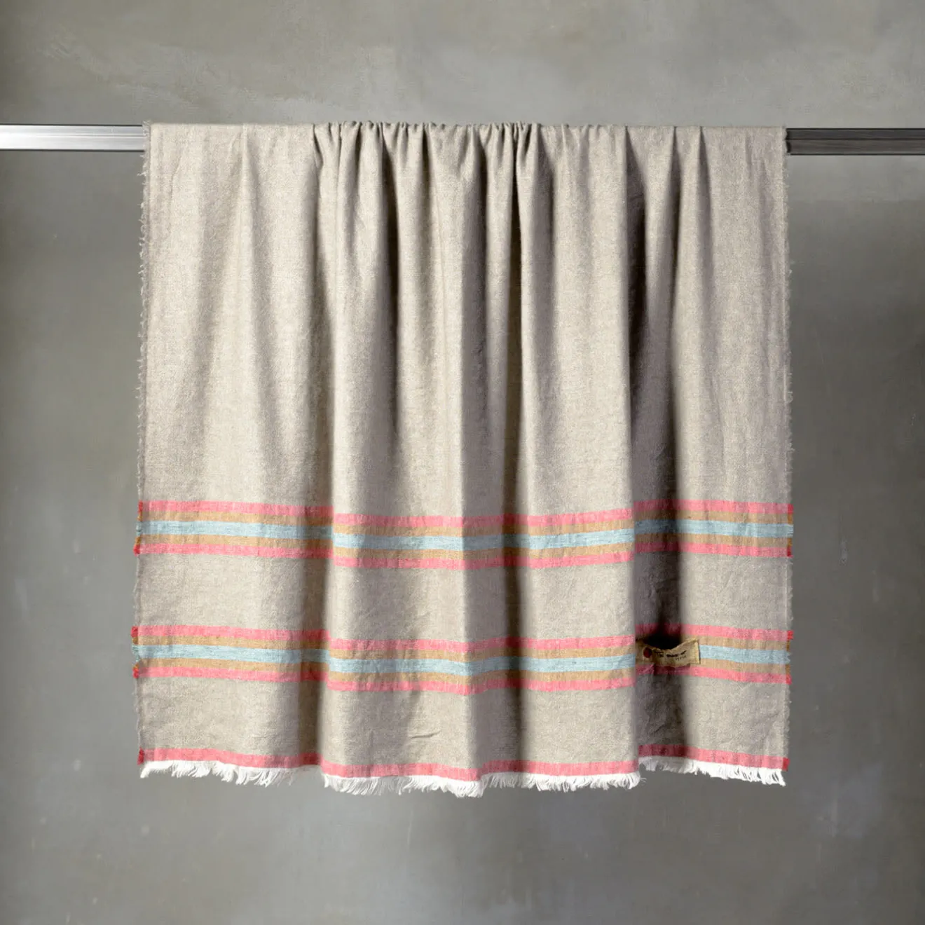 Tranquilla nei suoi dettagli lineari quanto frizzante nelle sue scelte cromatiche, questa coperta è una soluzione perfetta per accentuare gli arredi dai toni neutri con un tocco di colore. Il sapiente mix di lino e cachemire le conferisce una morbidezza e una freschezza sorprendenti, anticipando la piacevolezza del suo abbraccio.
