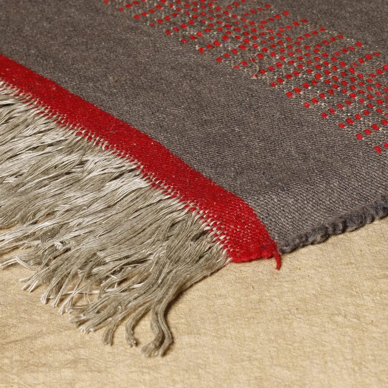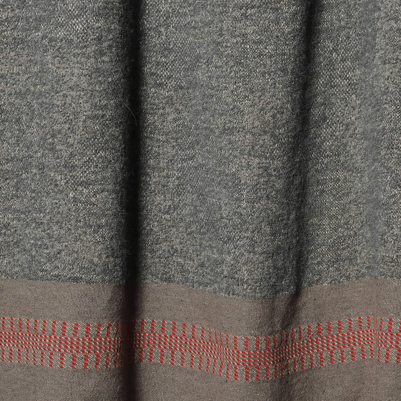 L’orgoglioso bordo rosso della coperta Melanzio tradisce la dolcezza della coperta jacquard dolcemente increspata in lino, alpaca e mohair, proprio come l’omonimo mitico capraio tradì il suo padrone Ulisse alla sua reggia.