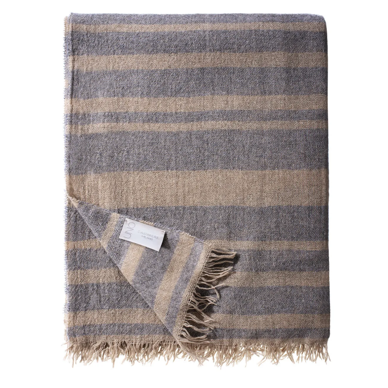 Tessuto al telaio utilizzando solo i filati più pregiati di cashmere e pura lana vergine, questo raffinato copriletto trasformerà la seduta sul divano in un’esperienza confortevole e riposante. Lo spessore sottile, simile a quello di un velo, lo rende leggero e sorprendentemente caldo, mentre il sottile contrasto di tonalità neutre tra le righe e gli orli sfrangiati su due dei suoi lati ne esaltano il potenziale estetico.