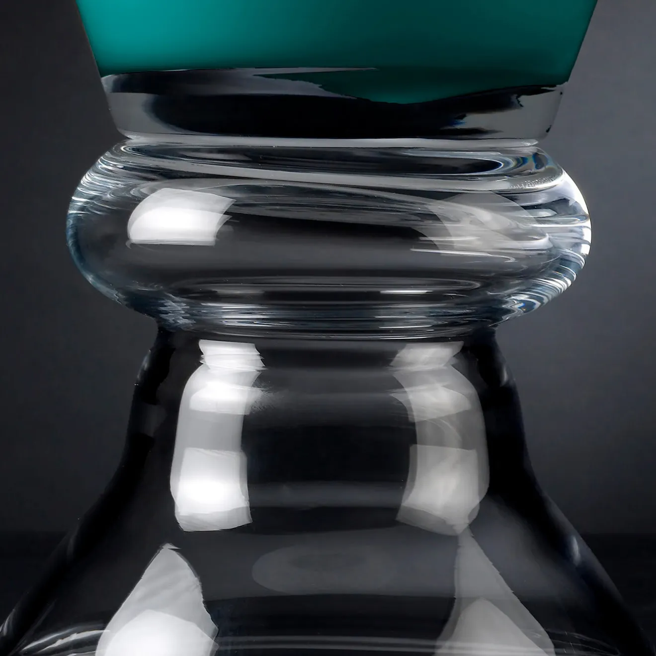 Parte di una serie di raffinati oggetti d’arredo in vetro, questo vaso si farà notare sia nelle case moderne che in quelle classiche, soprattutto se abbinato ad altri della stessa serie. Caratterizzato da una tavolozza di colori bicolore che conferisce una qualità affascinante, presenta una base in vetro trasparente con un profilo leggermente svasato che richiama quello della coppa svasata verde laguna.