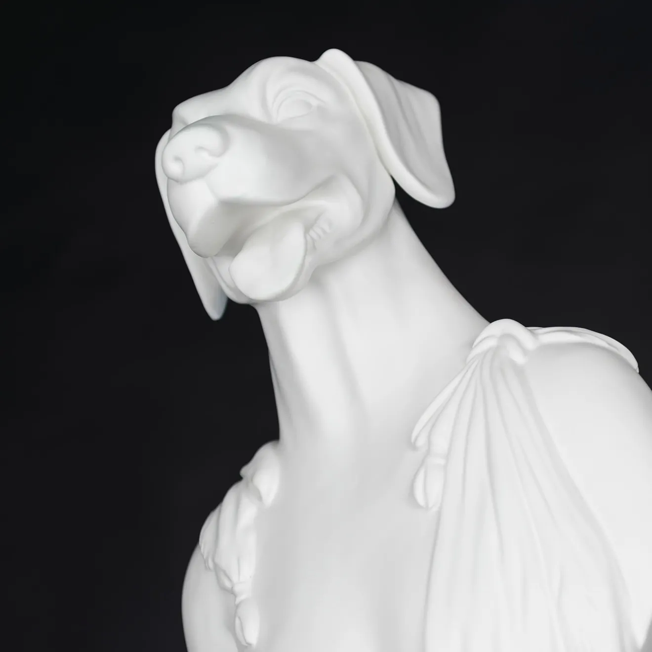 Un omaggio giocoso ad Argo, il fedele cane di Ulisse nell’Odissea, questo busto bianco opaco è stato minuziosamente realizzato a mano in ceramica da maestri artigiani. La combinazione di tratti umani e animali contribuisce alla personalità eccentrica del disegno, ammorbidita dalla scelta di un’elegante finitura bianca opaca. Ogni dettaglio, dalle orecchie alle pieghe del drappeggio, è unico e non può essere riprodotto esattamente come l’articolo illustrato.