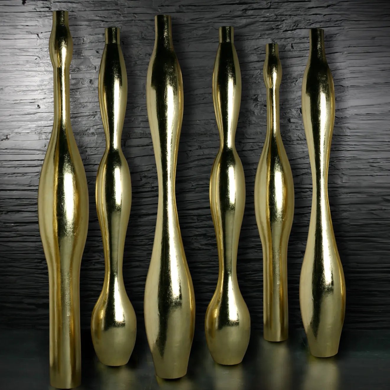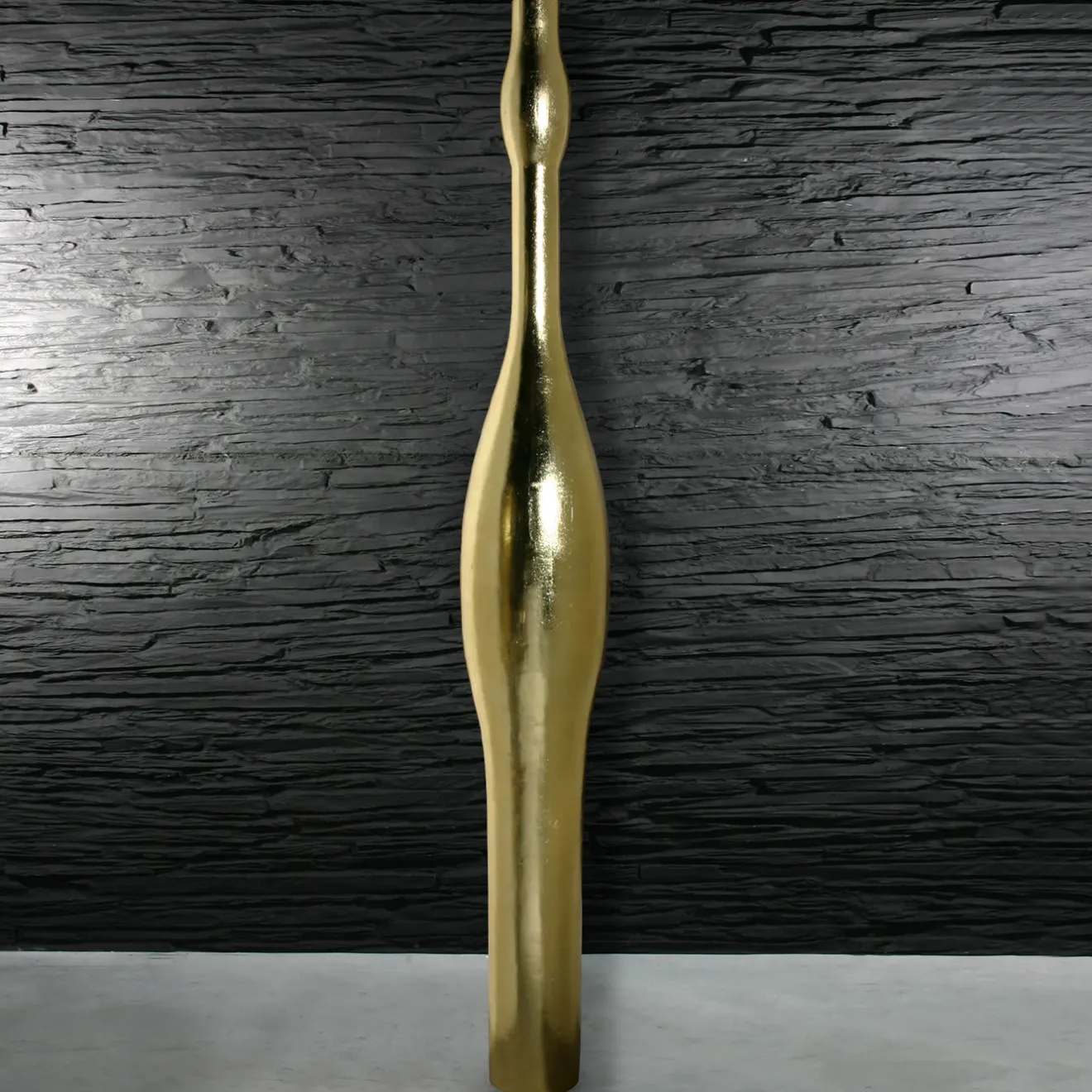 Evocando la forma di un corpo femminile, questo vaso di grande effetto vanta una silhouette alta (231 cm) le cui linee sinuose sono esaltate dalla pregiata foglia d’oro. Pezzo da collezione realizzato interamente in resina, questo vaso apporterà interesse ed eleganza scintillante a un salotto moderno, a un’area lounge o a un ingresso in interni residenziali e commerciali.