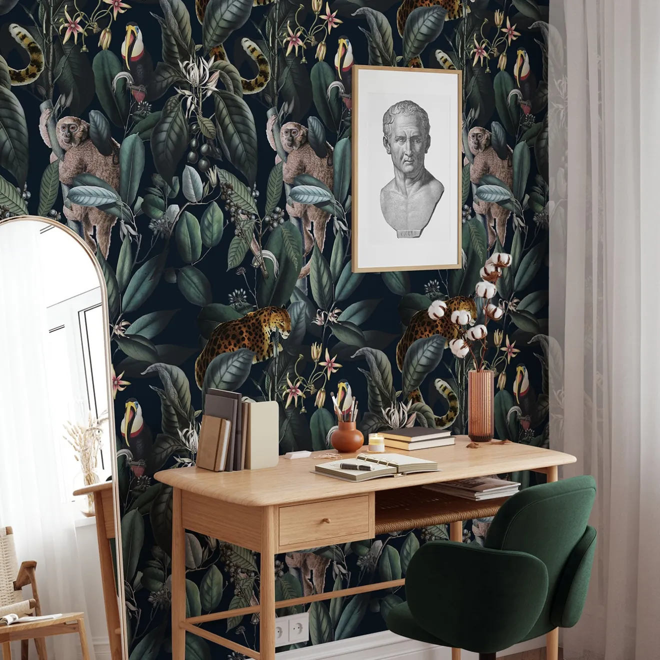 Carta da parati ecologica, realizzata con inchiostri vegani a base d’acqua, progettata e stampata in Italia utilizzando le tecnologie più avanzate. Versatile per muri, mensole e mobili. Eccentrica ma elegante, una maestosa tematica botanica risalta sullo sfondo nero, infondendo fascino nella stanza. Lo stile vintage si fonde con la sofisticatezza botanica, trasformando ogni spazio con contrasti di colore e bellezza naturale. Sono incluse le istruzioni. Il prezzo si riferisce a un pacchetto contenente 8 fogli di carta da parati di alta qualità. Ogni foglio misura 27,5 x 39,4 pollici (70 x 100 cm), per una copertura totale di 59,2 piedi quadrati (5 mq).