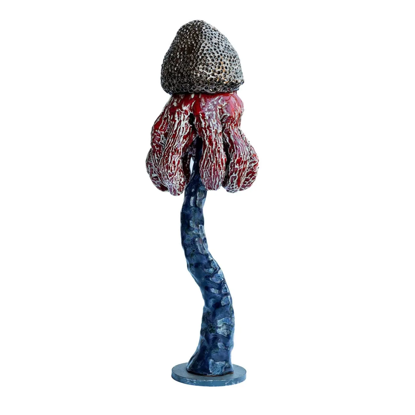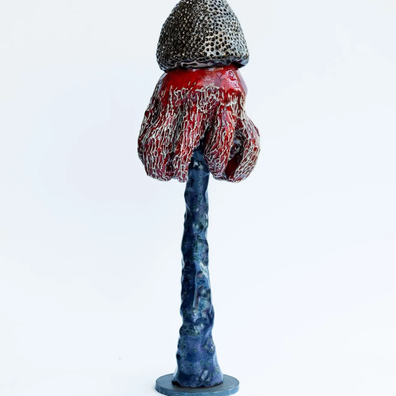 Queste sculture in ceramica sono realizzate con elementi cotti singolarmente, ciascuno considerato in modo indipendente prima di essere perfettamente abbinato. I pezzi sono impilati su una base di ferro per un equilibrio ideale. Interamente costruito e decorato a mano, ogni pezzo è davvero unico. Ispirati ai “funghi”, evocano ricordi d’infanzia e celebrano le imperfezioni della natura – gambi storti, superfici con bolle e graffi – trasformando i difetti in bellezza. Dal 2018 sono stati creati oltre 100 modelli unici, ognuno dei quali si distingue.