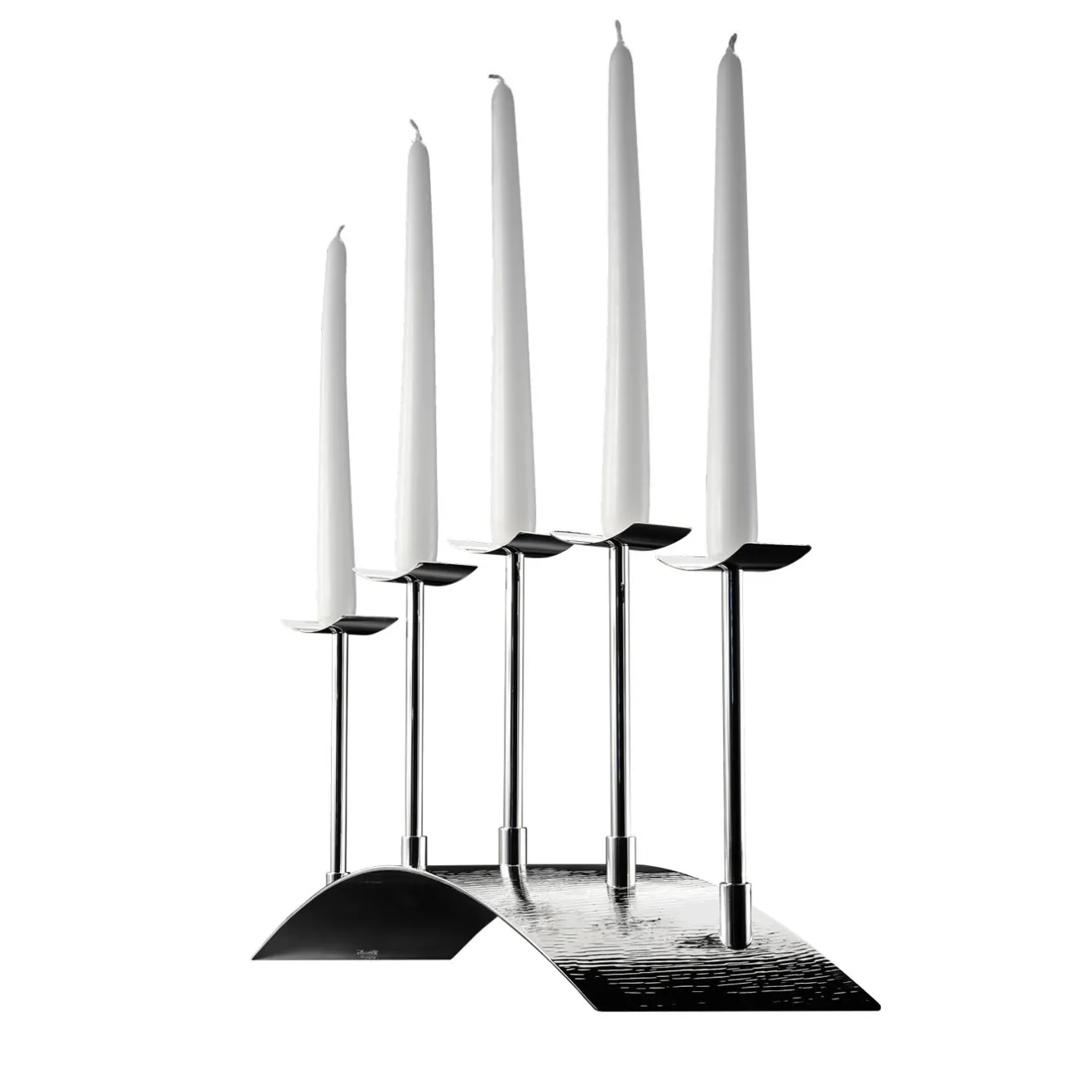 Sensuale candelabro realizzato in lega argentata con una texture straordinaria.