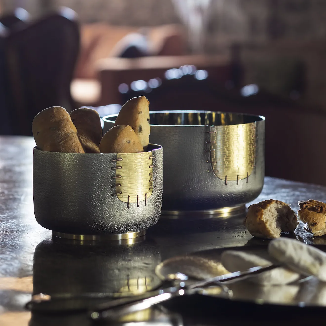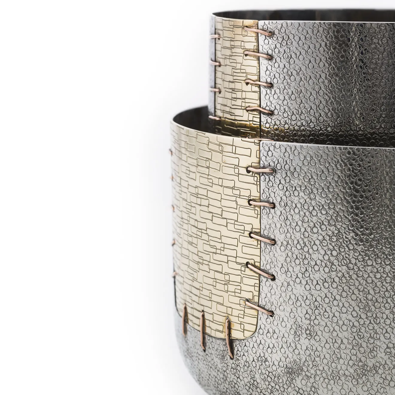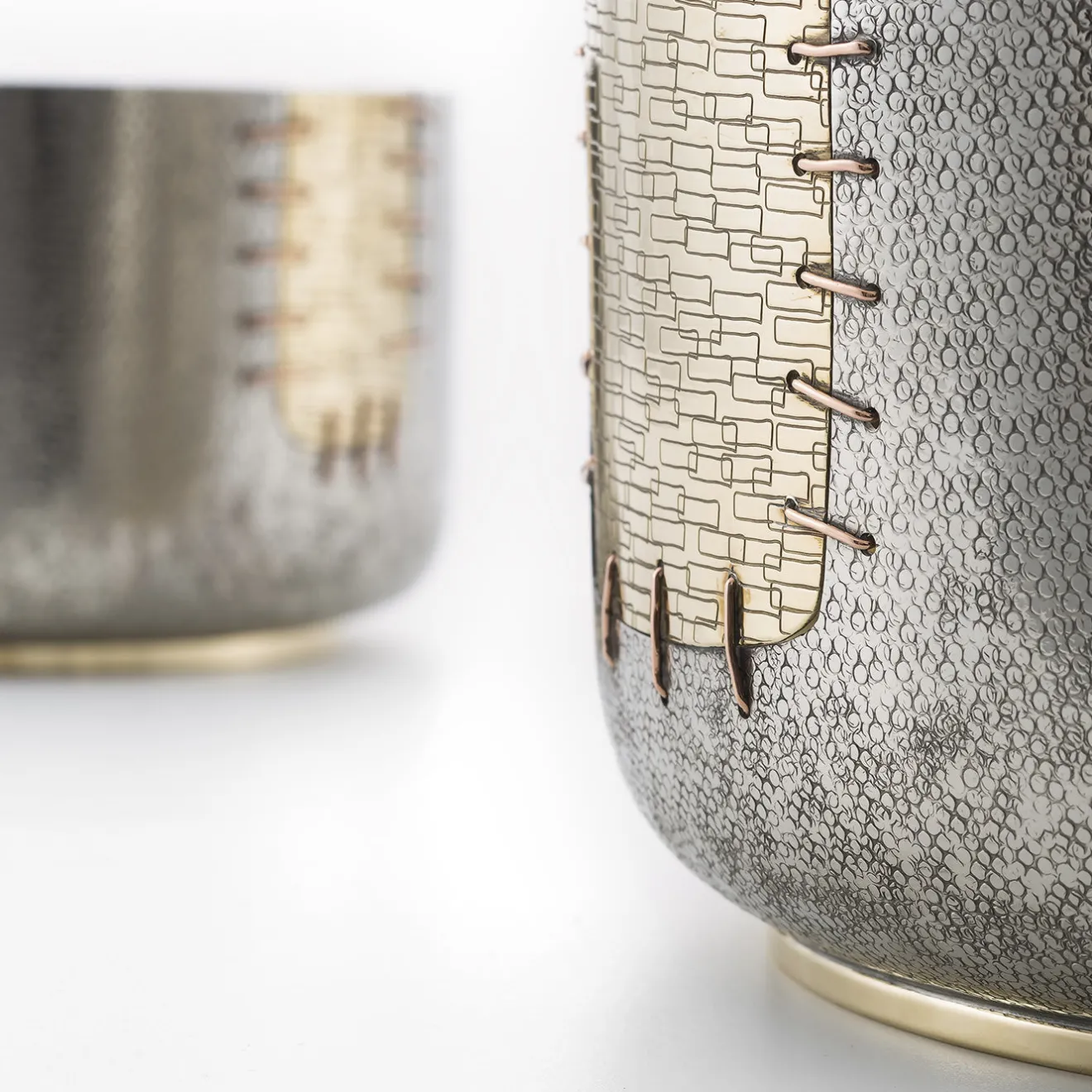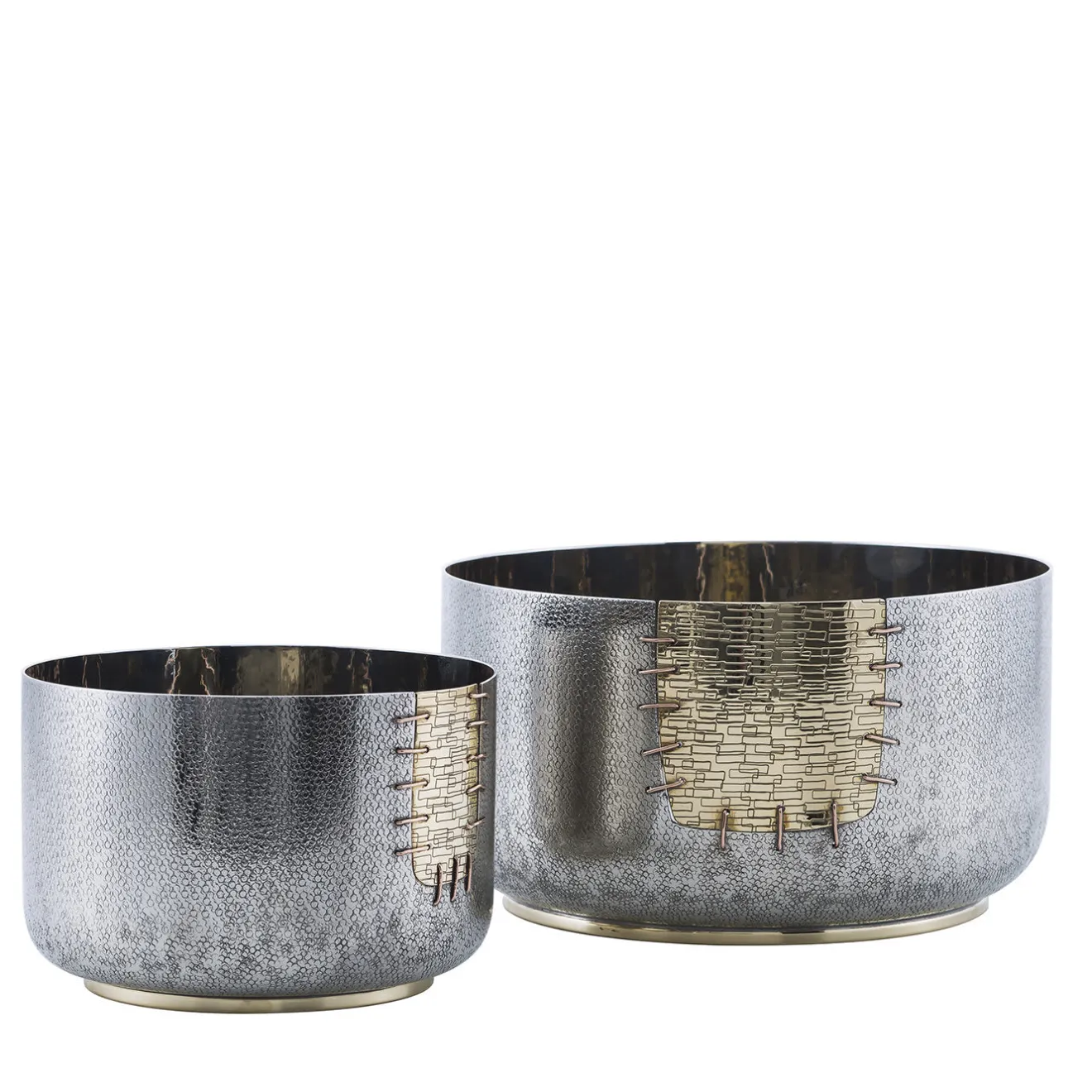 Questa ciotola è un’aggiunta versatile e sorprendente a qualsiasi casa moderna dove, sia come vaso che come centrotavola, farà la sua figura. La sua semplice silhouette è ornata da una toppa decorativa che sembra essere stata cucita. Parte di una serie limitata, il rame, il bronzo bianco e l’ottone utilizzati riflettono la luce circostante in modo unico, mentre la toppa simboleggia la ricerca di riparare e non buttare via gli oggetti rotti, secondo la filosofia giapponese del Kintsugi.