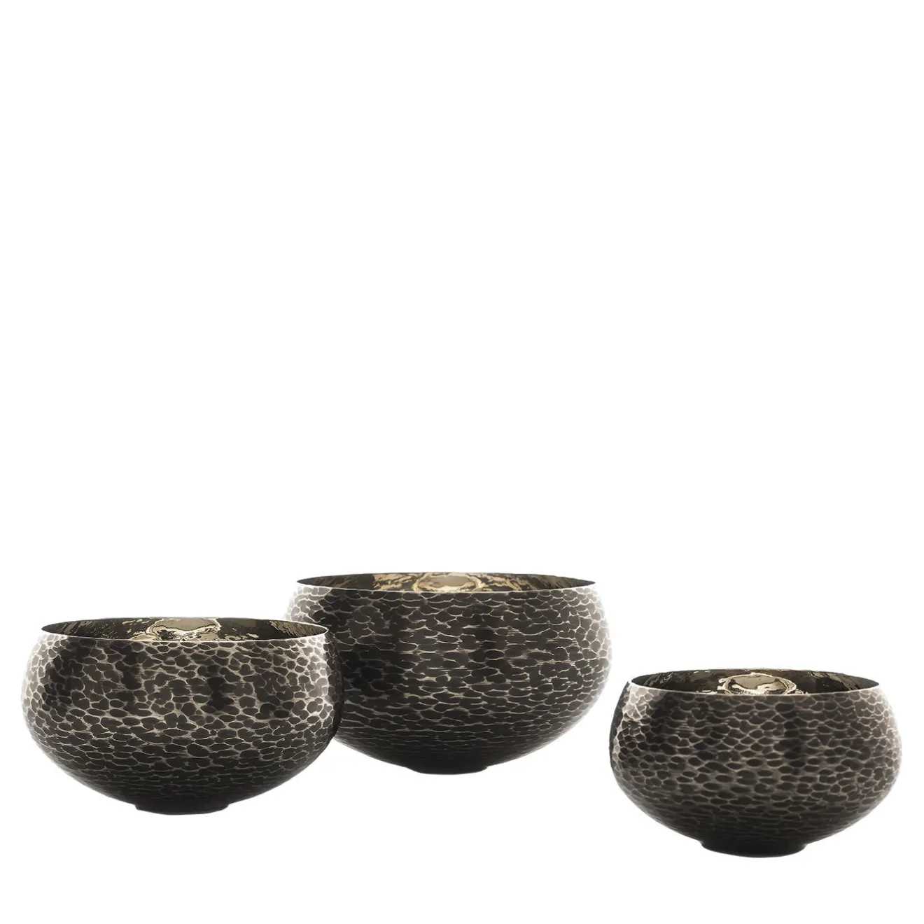 Realizzata in bronzo con una suggestiva finitura nera ottenuta dalla brunitura della superficie del bronzo bianco, questa ciotola presenta una silhouette semplice con un corpo rotondo che poggia su una piccola base a plinto e si apre in un’ampia bocca. Un pezzo versatile di arredamento funzionale, questo oggetto può essere una preziosa aggiunta a una sala da pranzo o a un ingresso, per servire finger food o esporre piccoli oggetti di uso quotidiano. La sua superficie unica è elegante e moderna e rende questo oggetto una presenza ideale in una casa contemporanea.