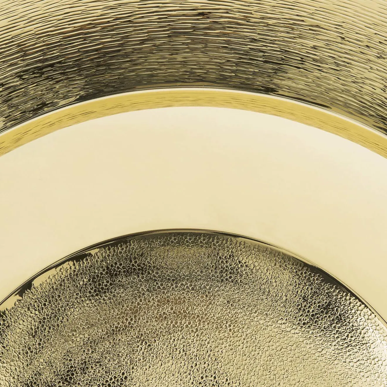 Realizzata in ottone con placcatura in oro, questa elegante coppa esemplifica la tradizione artigianale e l’estetica innovativa del design. Il piatto rotondo presenta un bordo svasato che degrada verso il centro del piatto per creare una superficie ondulata che alterna sezioni concave e convesse. Ogni sezione presenta un’alternanza di texture, da liscia a spazzolata, e di specchio. Questo lussuoso piatto, che prende il nome da Pantelleria, un’isola al largo delle coste siciliane, è un’opera d’arte senza tempo che arricchisce qualsiasi arredamento. Disponibile anche placcato in argento, contattare il Concierge. Fa parte di una serie numerata.